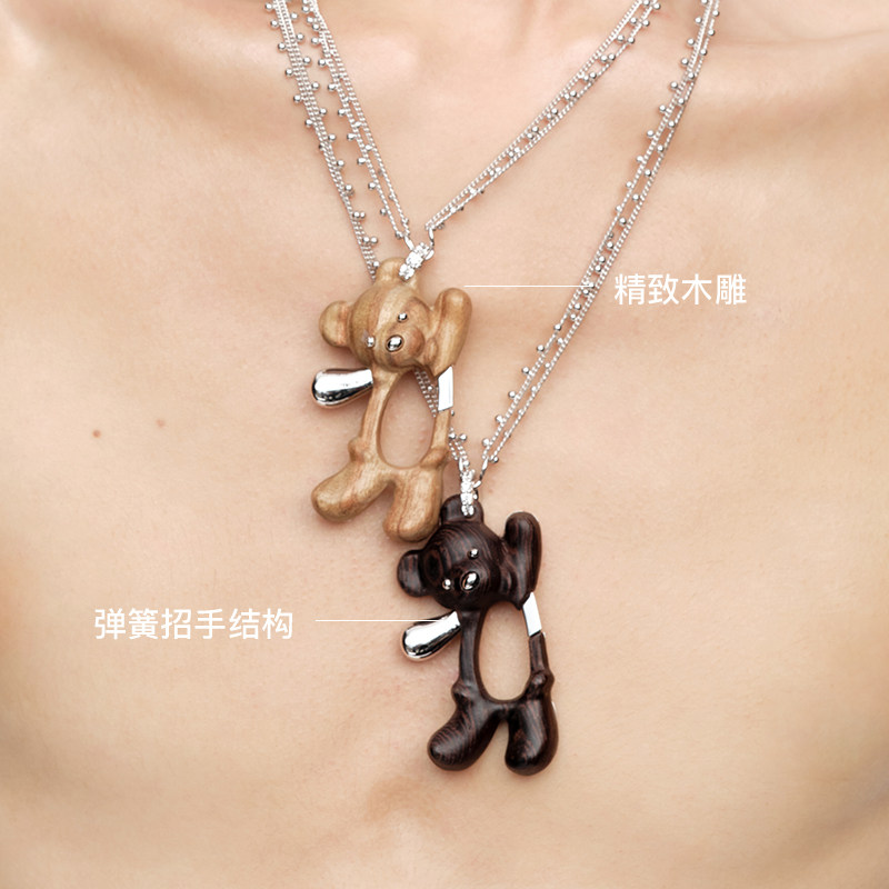 YVMIN尤目 招手熊木质弹簧扣项链毛衣链女款可拆卸新年生日礼物