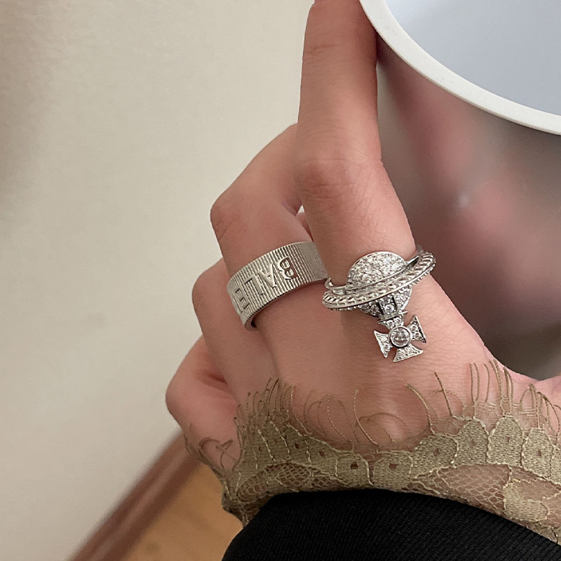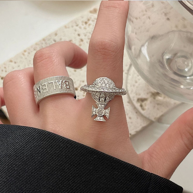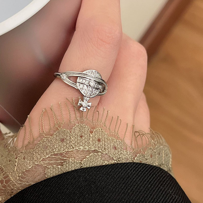 高级感满钻星球土星戒指女小众设计微镶字母开口指环轻奢食指戒潮