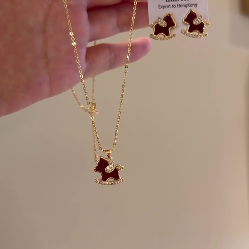 新中式红色滴釉小马项链女高级感小众复古马年本命年锁骨颈链配饰