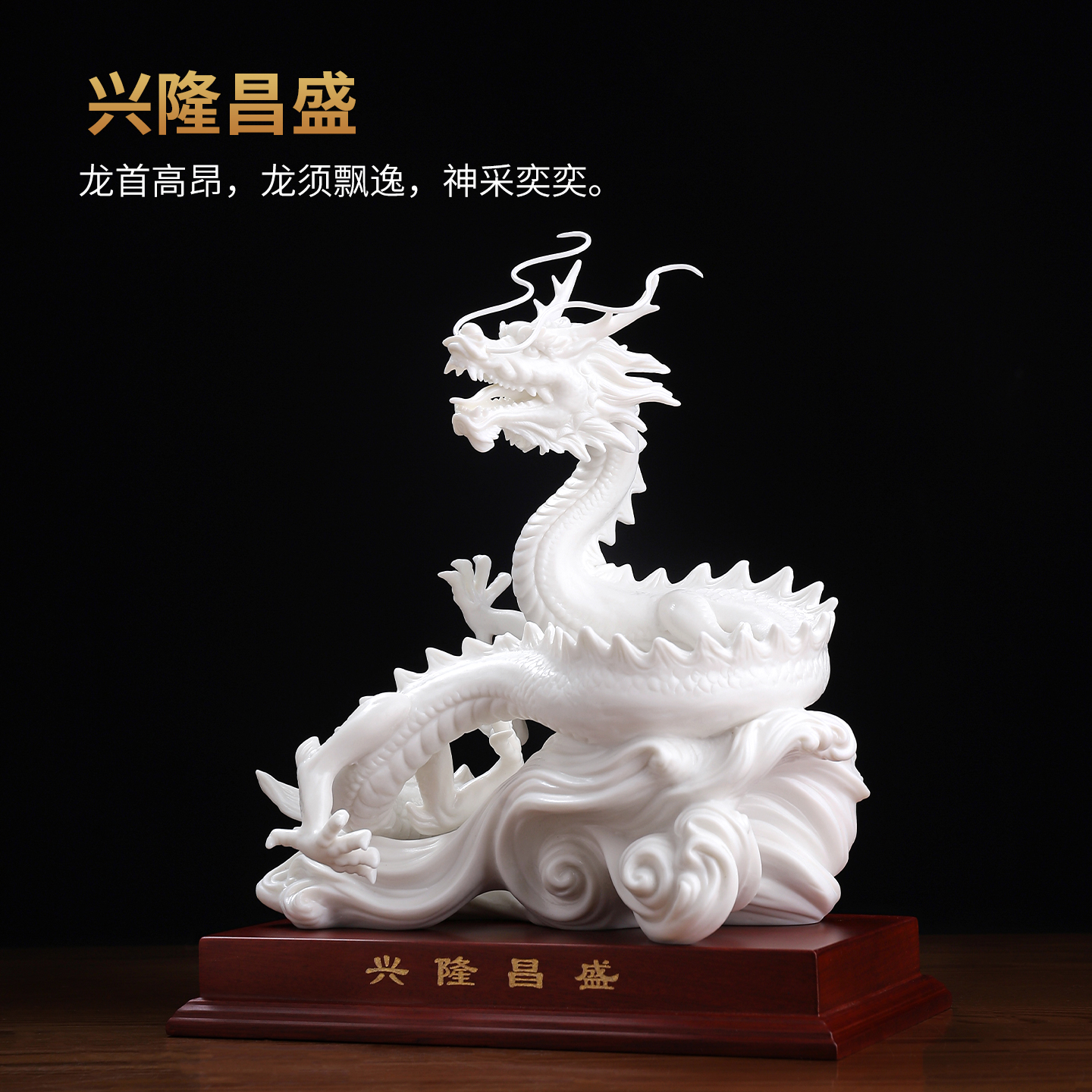 东方泥土《兴隆昌盛》蔡国海大师陶瓷祥龙中式神兽办公室收藏摆件