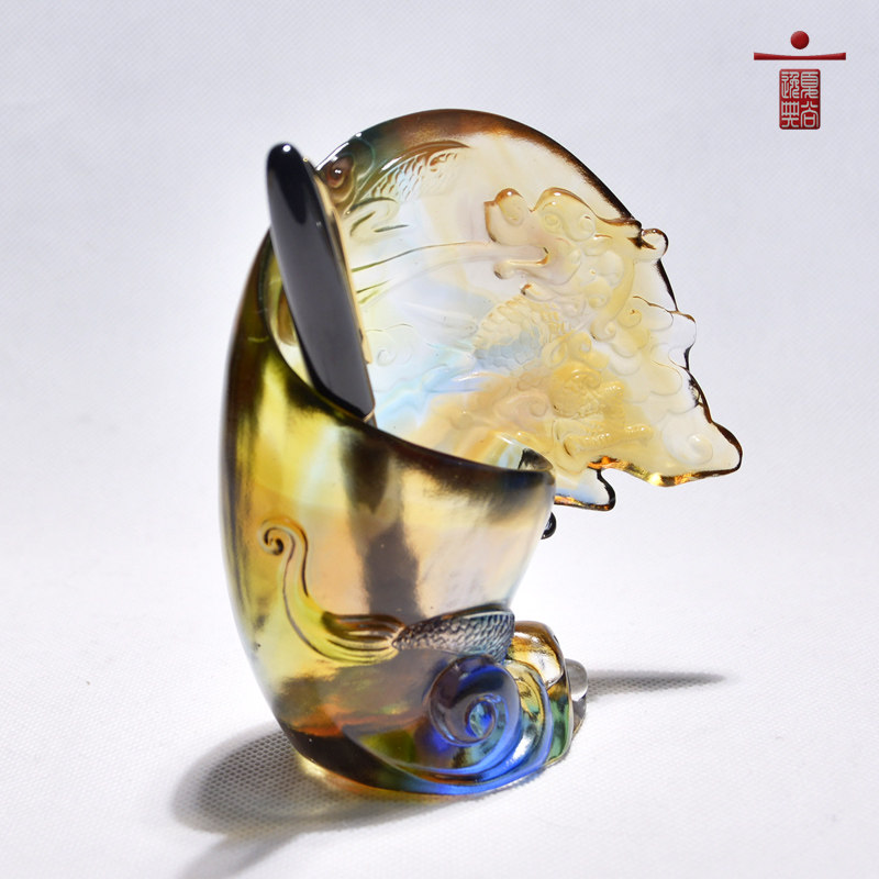 琉璃笔筒商务礼品创意飞龙工艺品书房柜办公室老板桌面摆件送老师