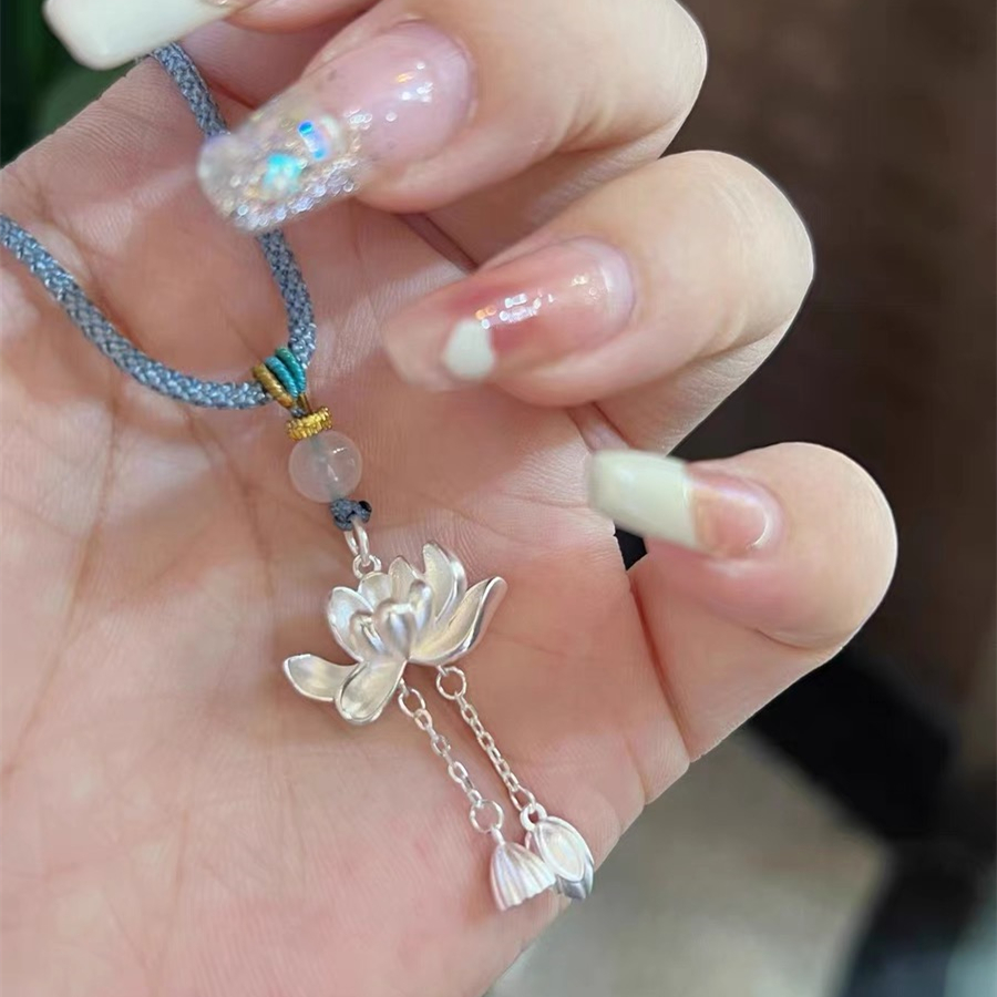 墨坊银舍 足银999莲花项链古法纯银好事连连两世欢荷花复古毛衣链