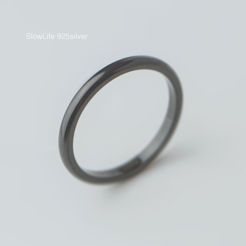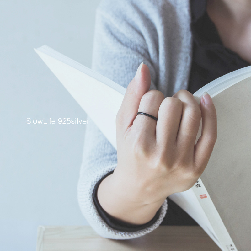 慢生活925纯银情侣戒指 韩版简约 光面黑色食指中指关节尾戒男女