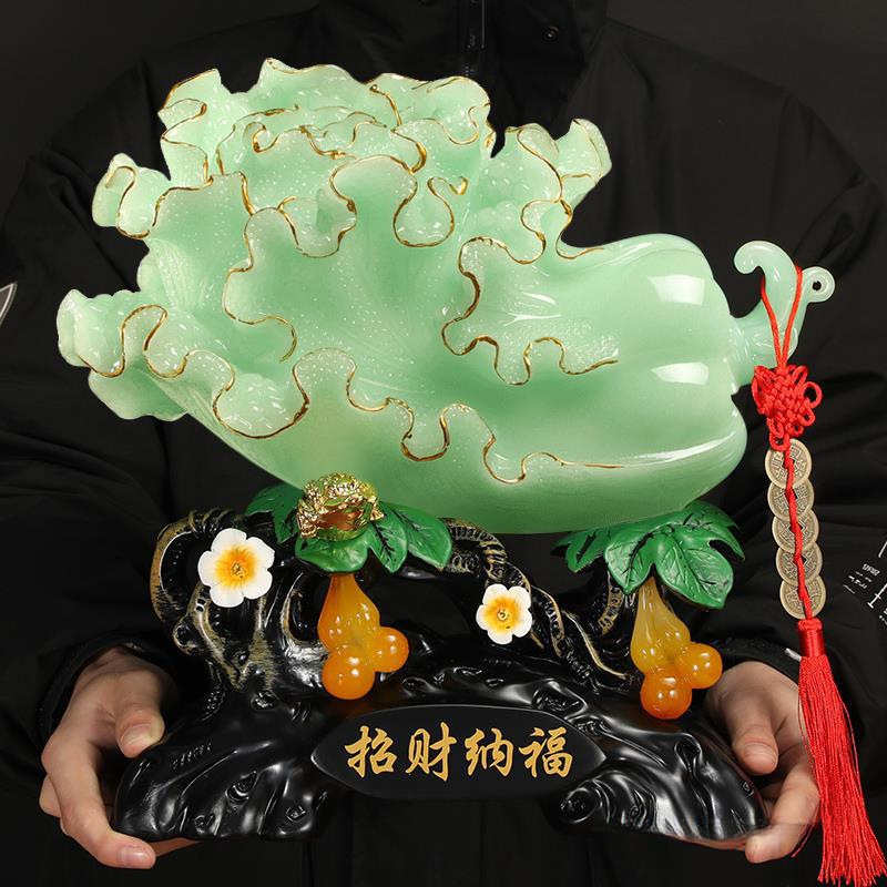 玉白菜摆件葫芦中式玄关客厅酒柜电视柜装饰品店铺开业礼品