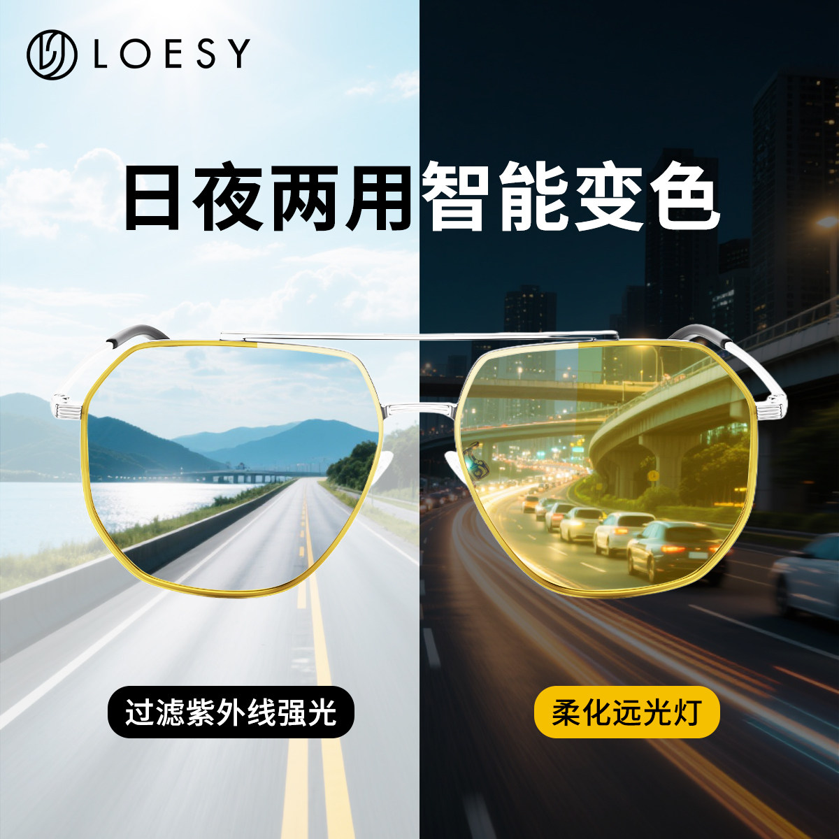 洛伊士夜视镜偏光变色太阳镜黄色镜片墨镜男司机开车专用眼镜1213