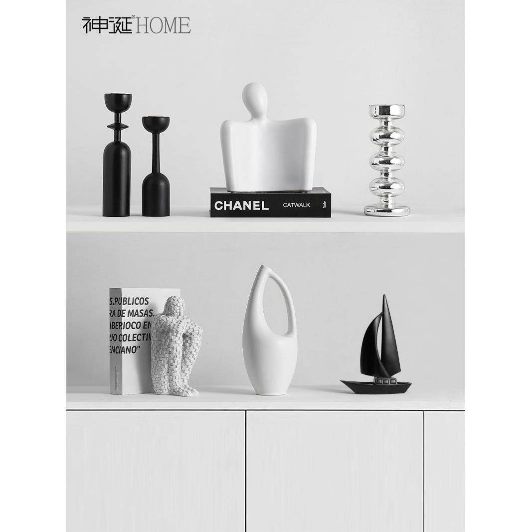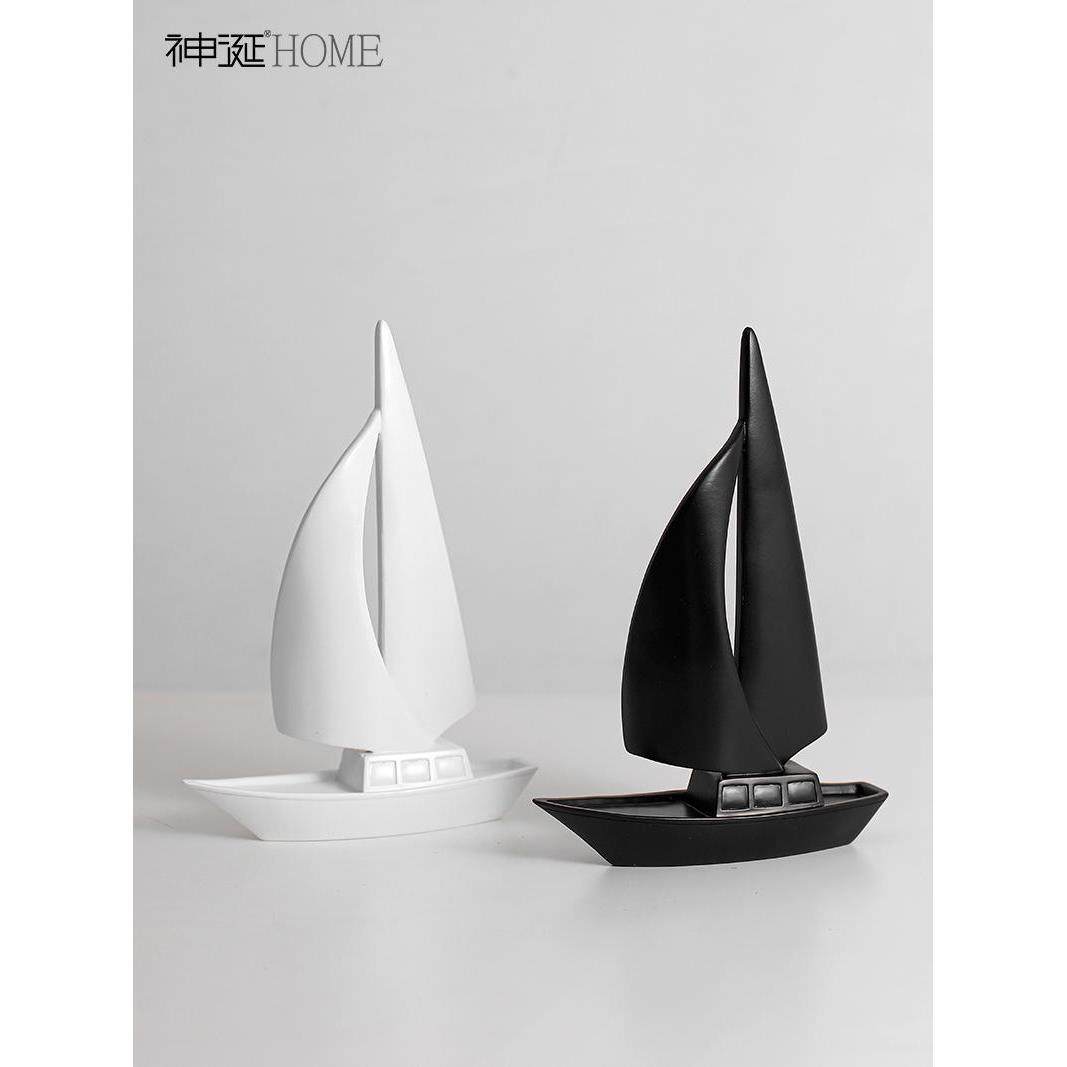 创意简约黑白艺术帆船摆件家居客厅酒柜电视柜摆设办公室软装饰品