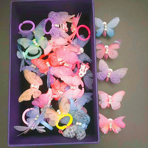 女童儿童戒指发夹蝴蝶首饰卡通指环小公主套装女孩饰品新年礼物