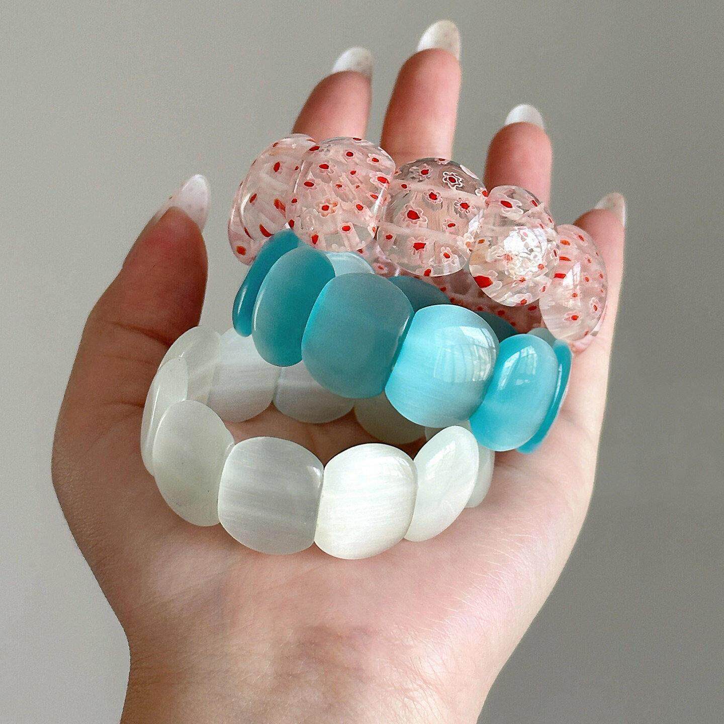 海蓝色仿琉璃碎花手链女漂亮独特清冷感手串显白日常精致小众手饰