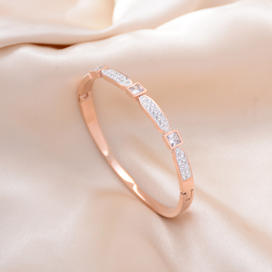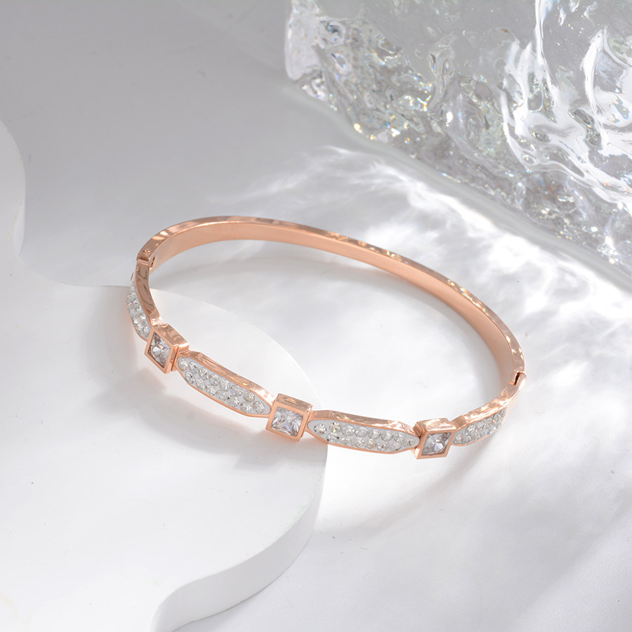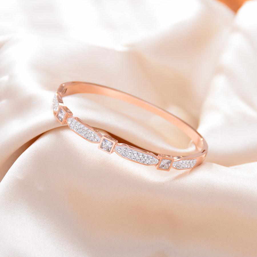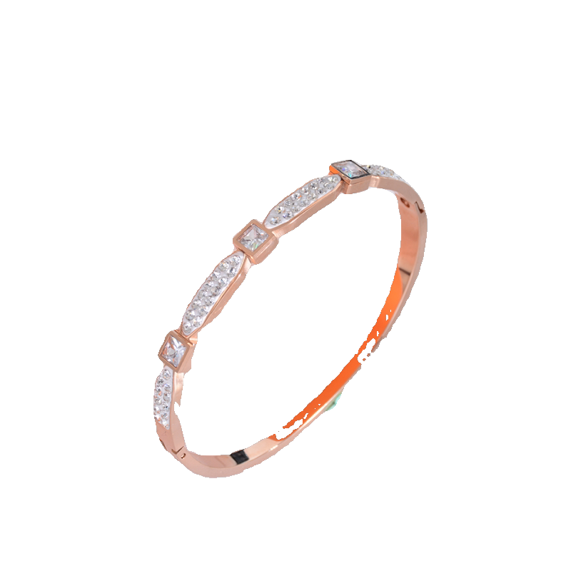 小众气质锆石钛钢手镯白色镶钻玫瑰金手环女饰品配饰礼物首饰潮流