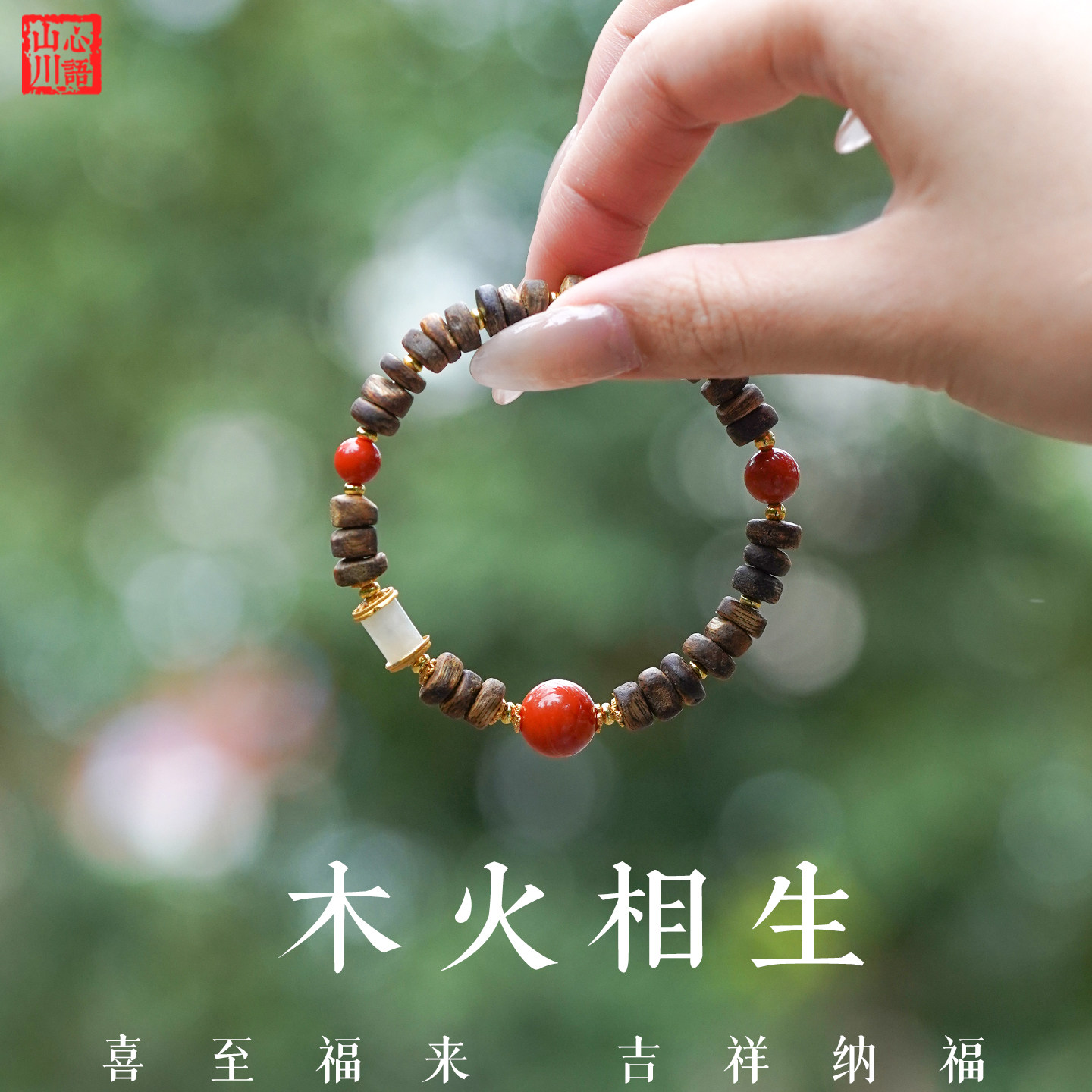 补木火手串五行缺木喜火天然南红沉香手链红色木火属性饰品送妈妈