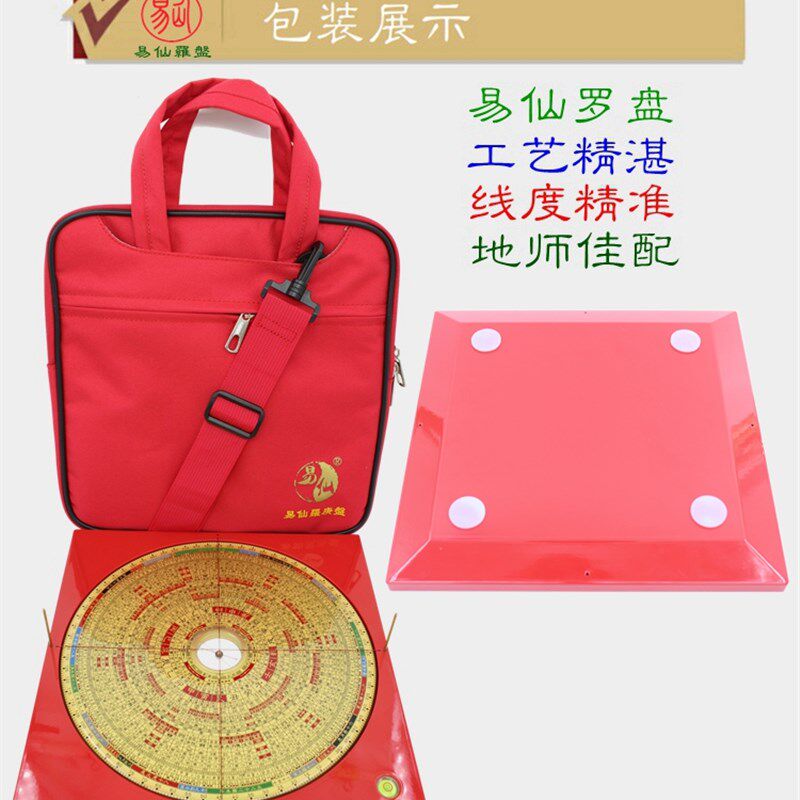 易仙强磁针8寸6三元罗盘曾子南款精准指南针红色电木罗庚盘摆件