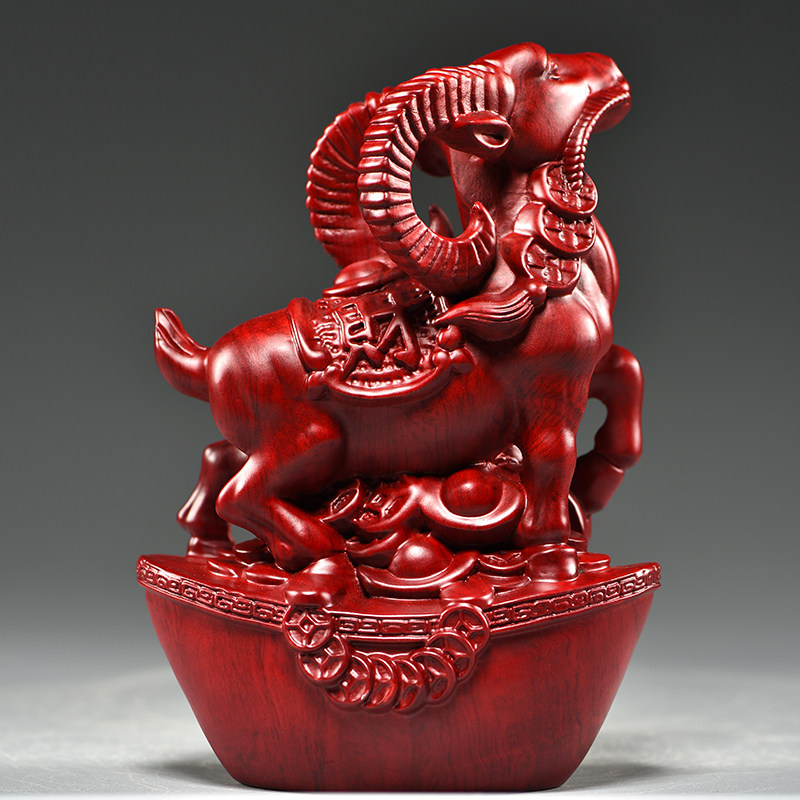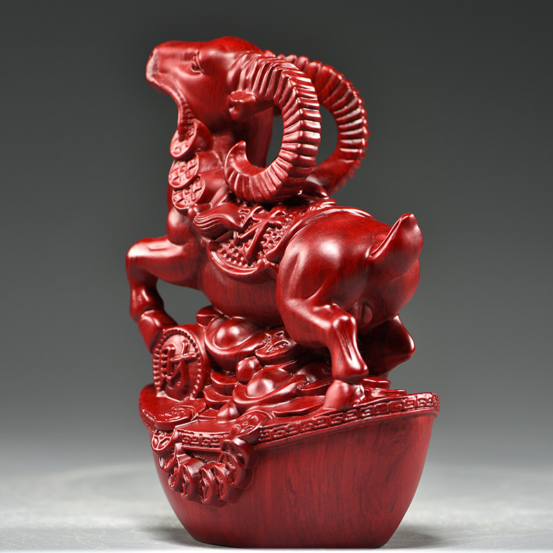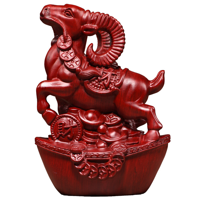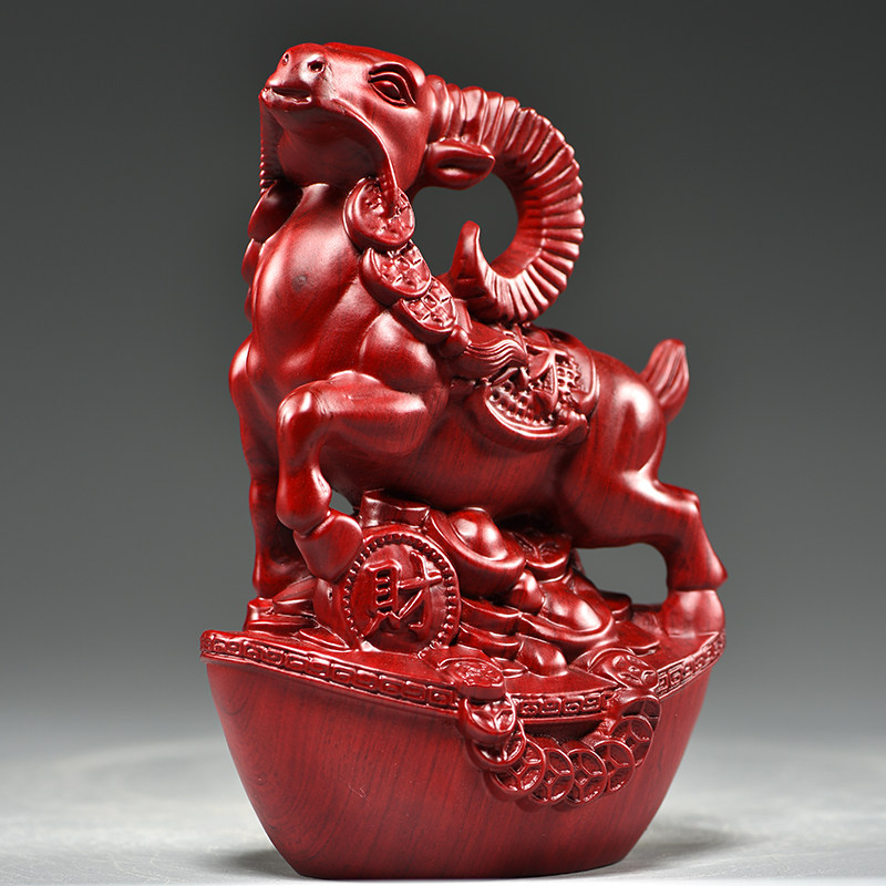 红色木头羊摆件实木质雕刻十二生肖木制山羊吉祥物装饰红木工艺品