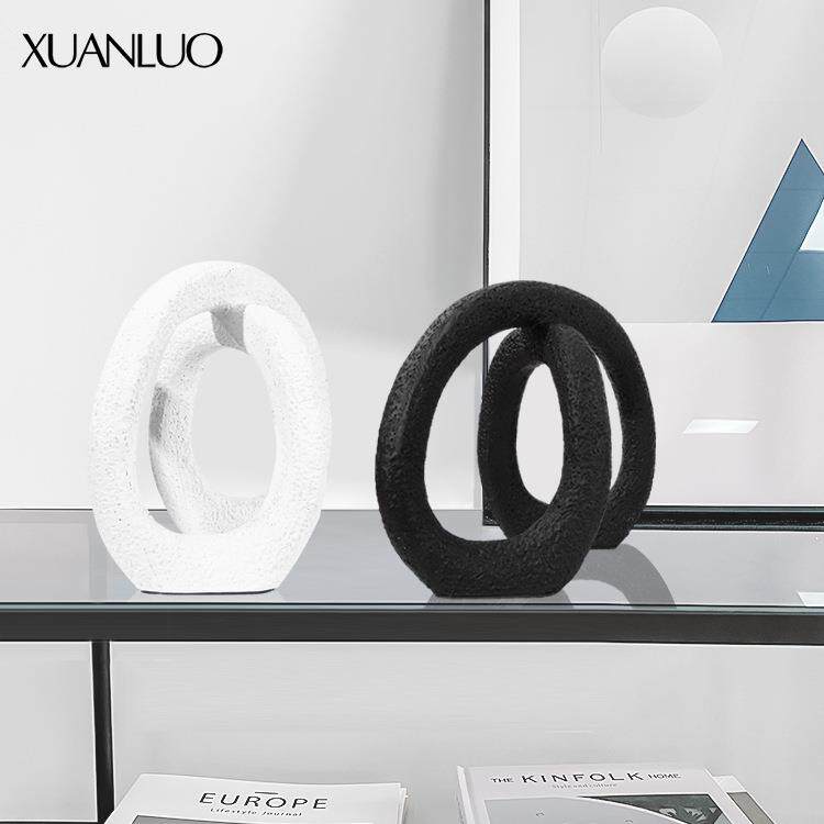现代极简意白色创环形样房间售楼板处9000-17大堂抽象展厅软装饰