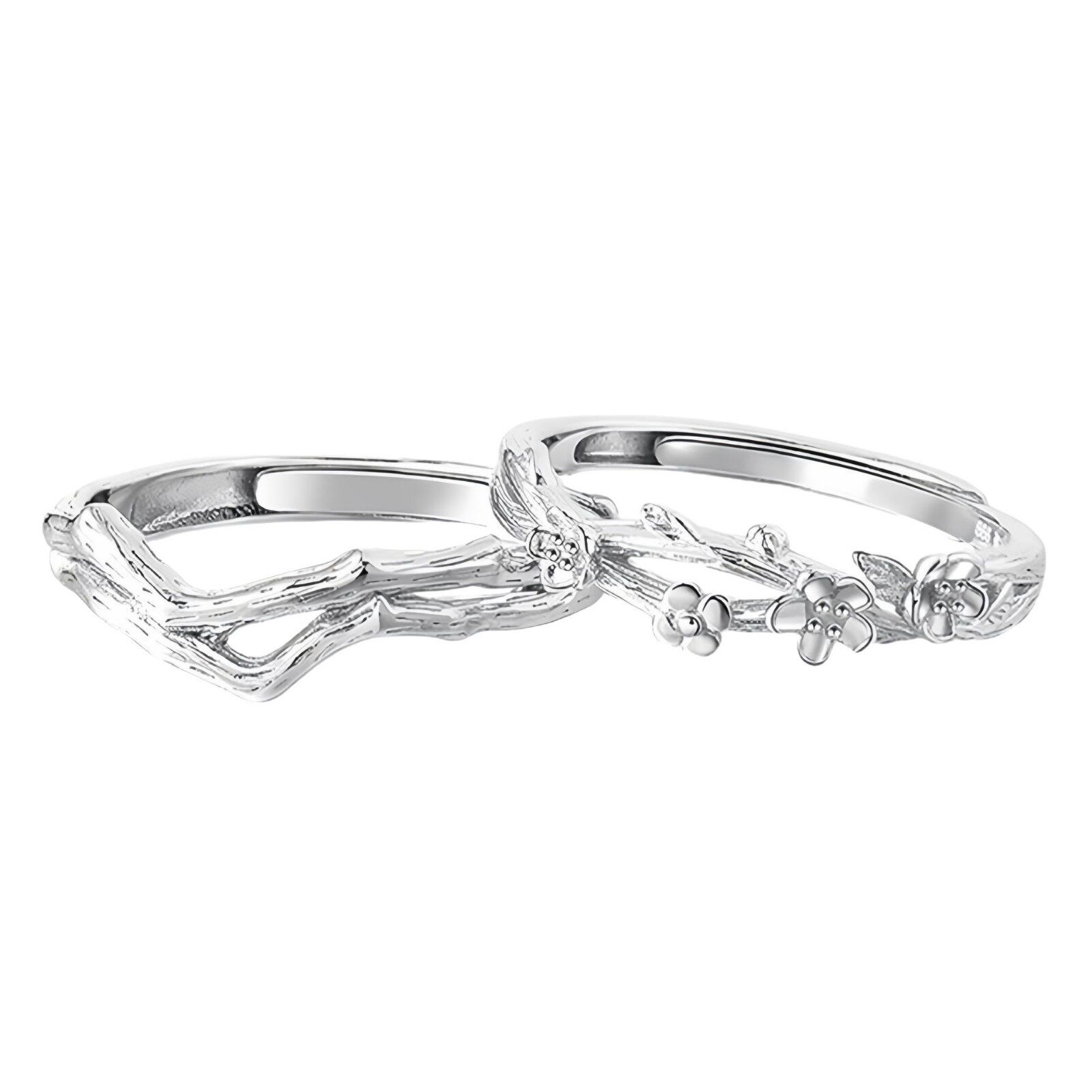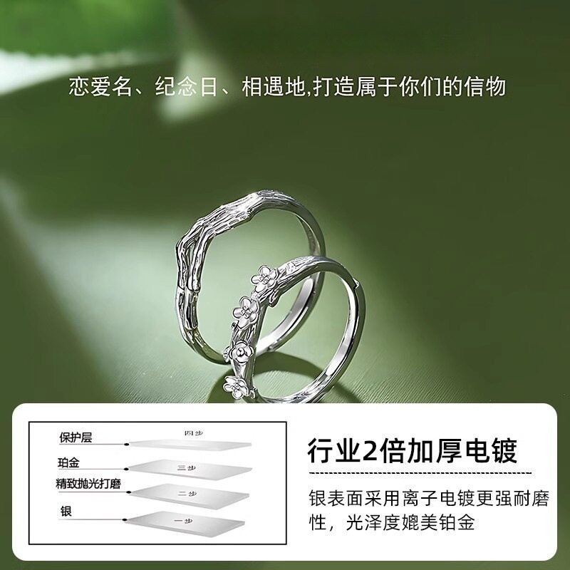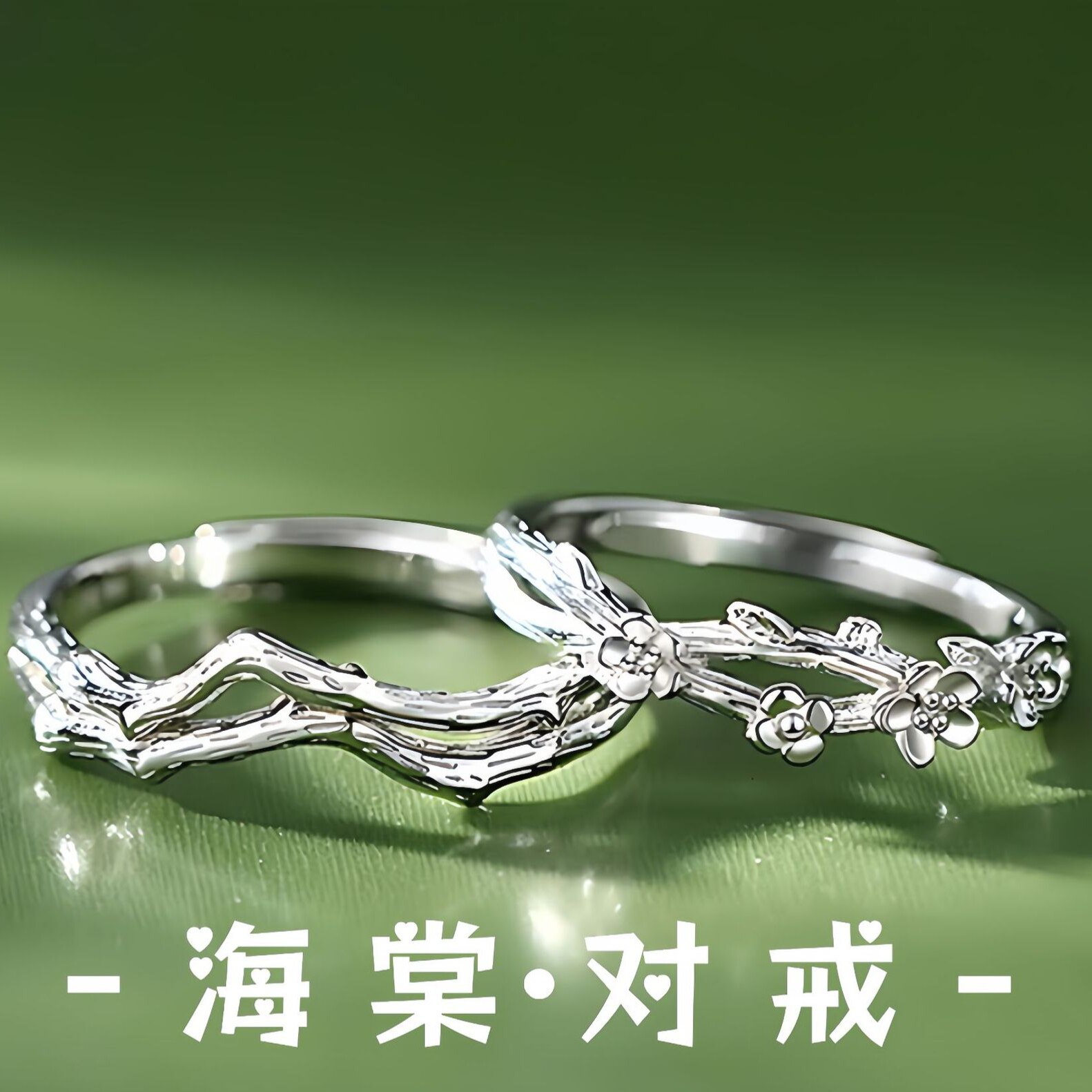 S999足银戒指海棠花开纯银情侣戒指推拉可调节食指戒送情人节礼物