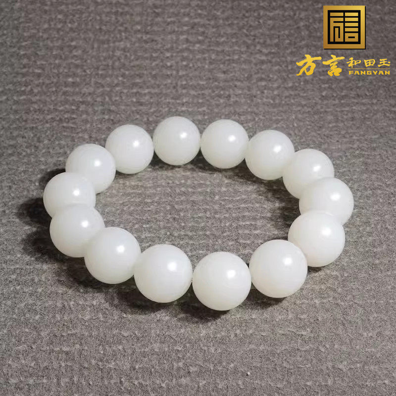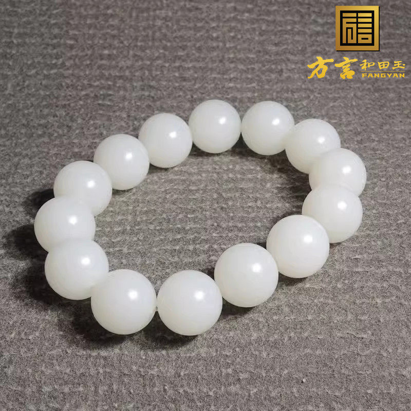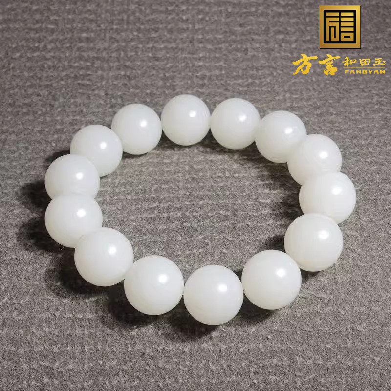 方言和田玉高品质近无结构俄料温润细腻羊脂白玉15mm圆珠手链串h2