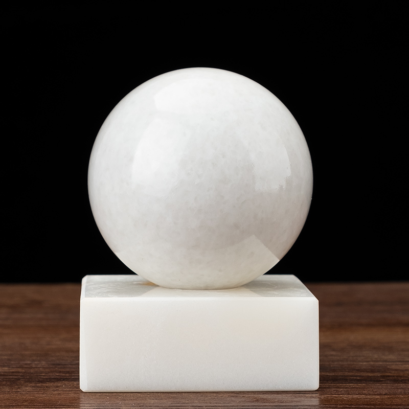 玉石圆风水球摆件白色黄大圆石春客厅摆件水晶球方型底坐装饰摆件