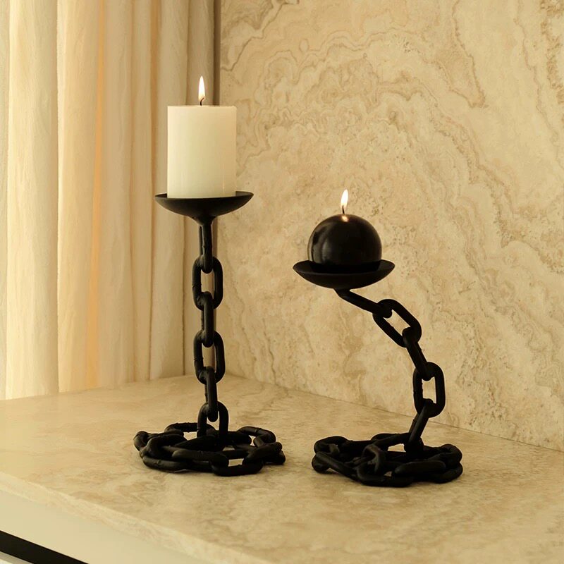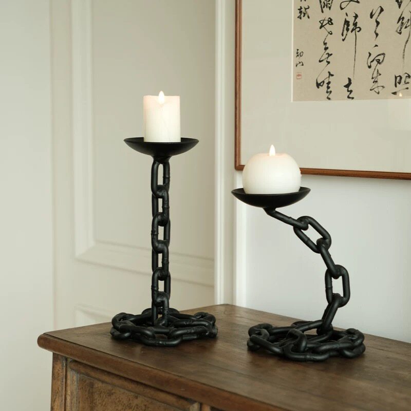 中古风复古黑色金属烛台摆件民宿酒店样板间餐厅烛光晚餐蜡烛饰品