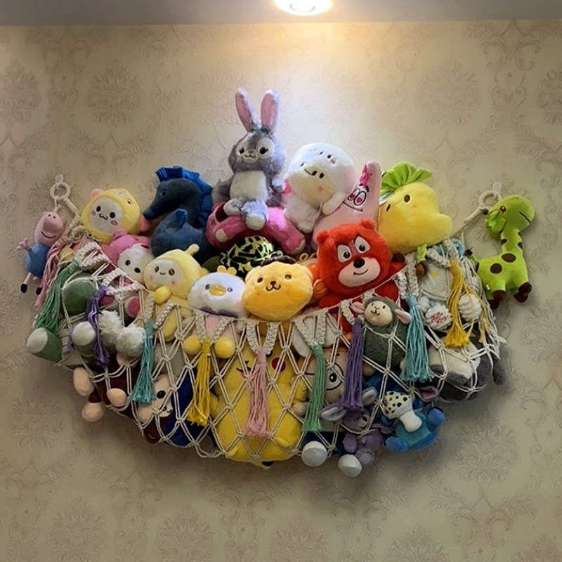 玩具收纳挂网棉绳编织壁饰置物袋墙壁网兜儿童房玩具网吊床背景墙
