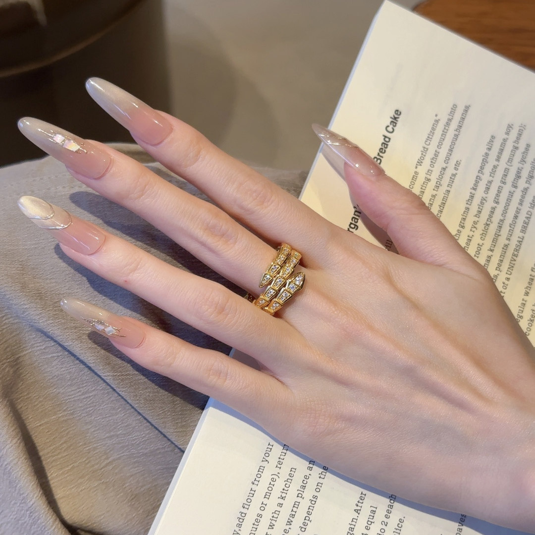 黄金灵蛇满钻戒指女三排莫桑镶嵌足金999经典蛇形纯金轻奢指环