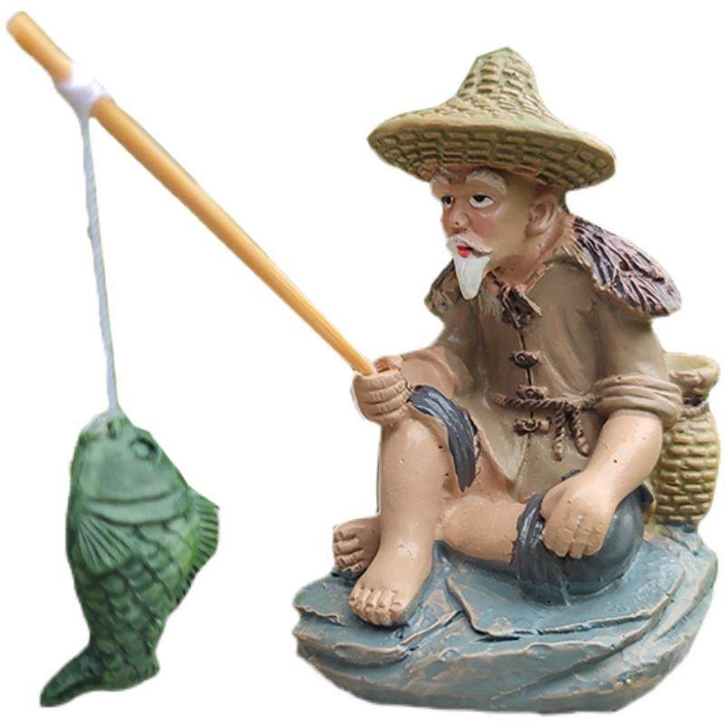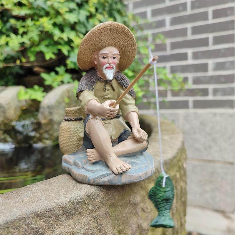姜太公钓鱼假山鱼缸流水盆景摆件钓鱼翁老头亭子家居饰品桌面装饰