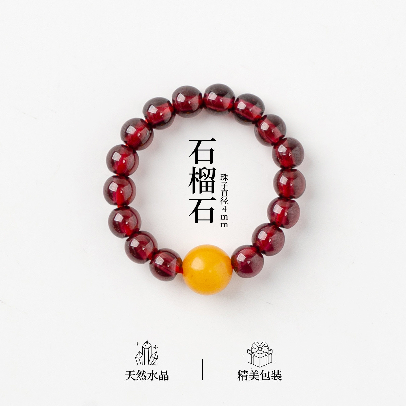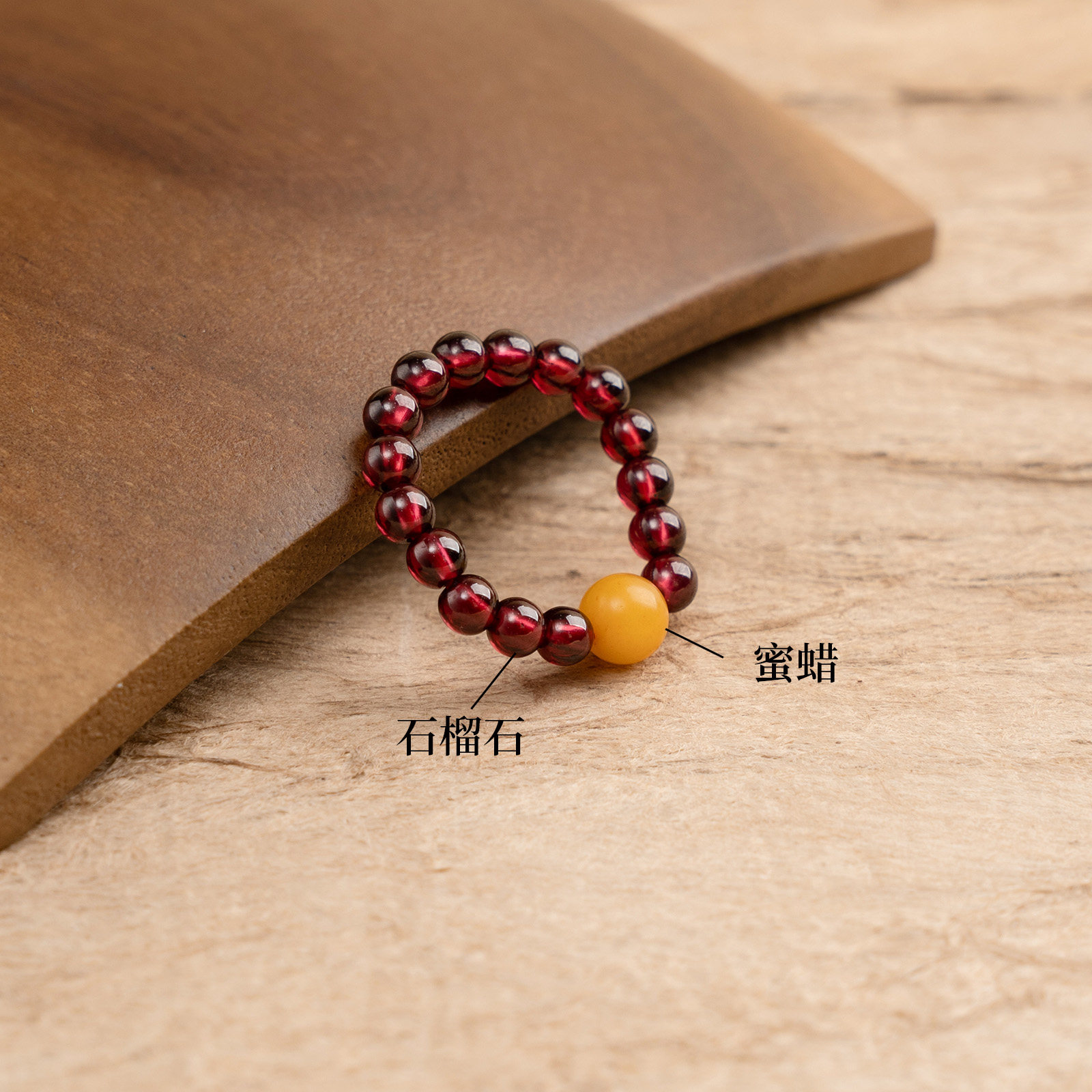 【温暖活力】蜜蜡石榴石戒指范李李新年礼物温暖相伴活力指环