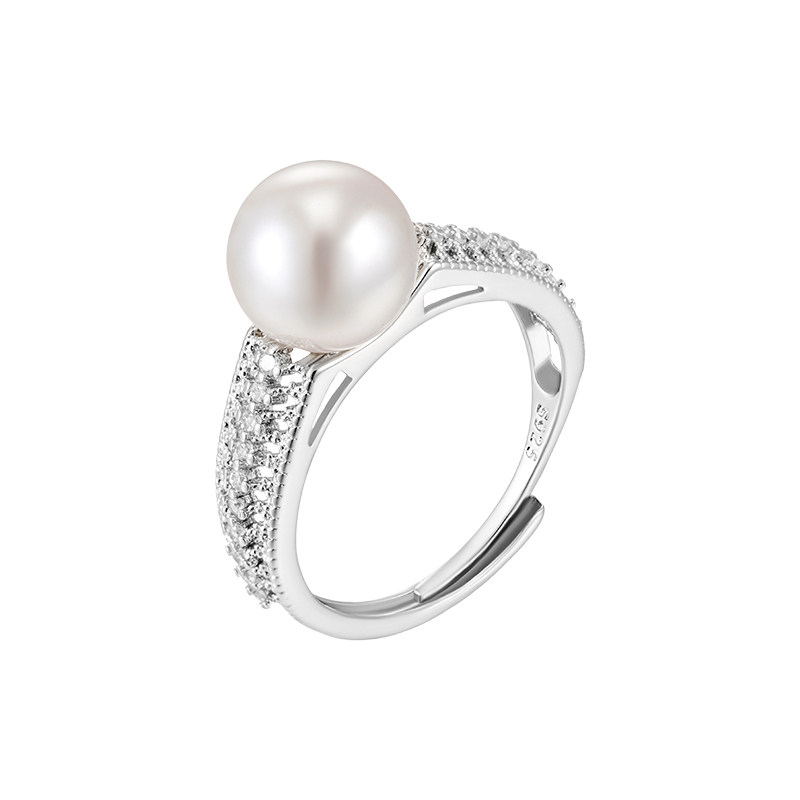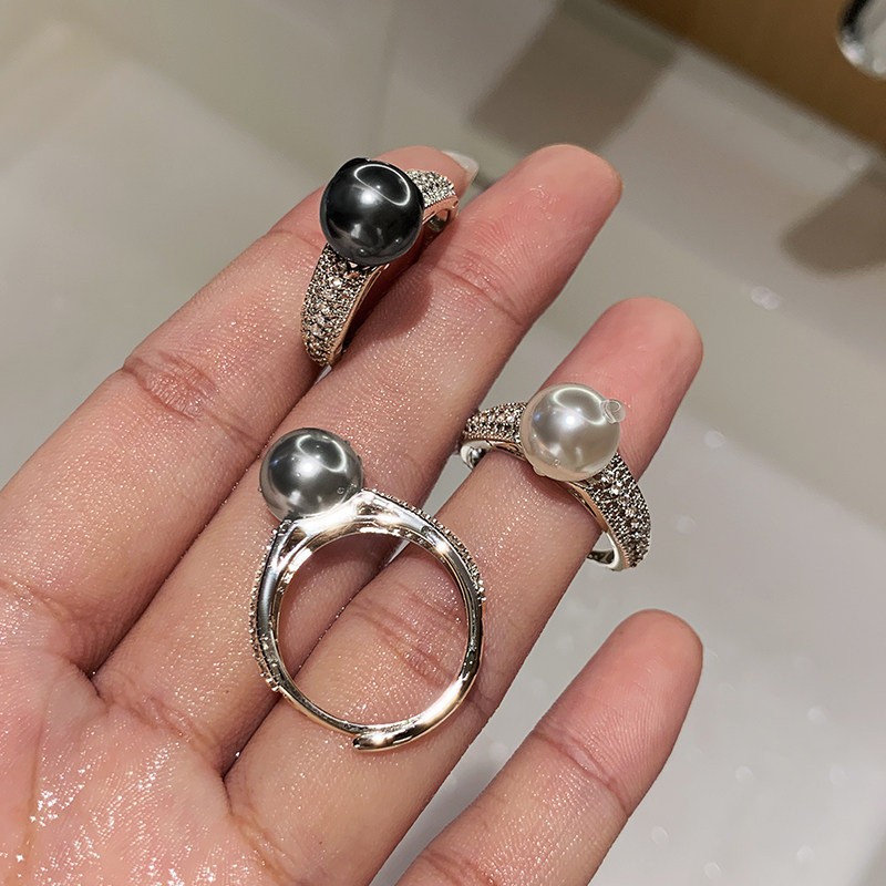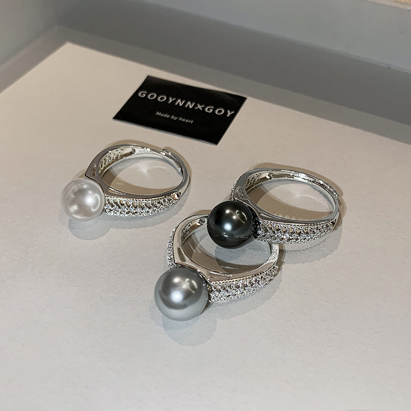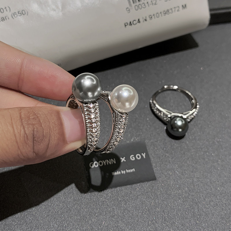银色真多麻灰色澳白珍珠戒指女高级感小众设计开口食指戒时尚指环