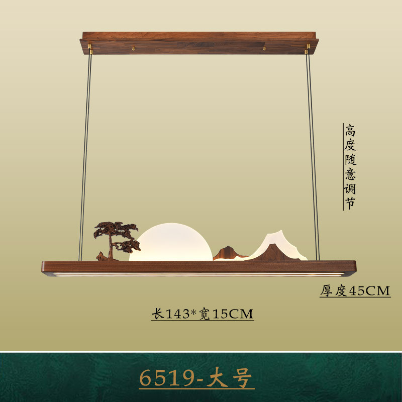 新中式茶室吊灯北美黑胡桃实木中国风餐厅灯长条茶桌吧台书房禅意