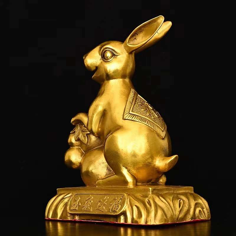 铜双兔送福摆件黄铜兔子生肖兔福禄兔客厅办公室店铺装饰吉祥福兔