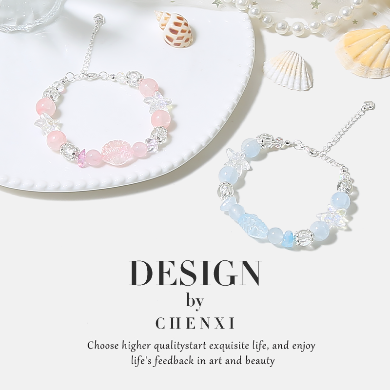 小清新冰透贝壳海星手链少女心高级感小众设计送闺蜜仙气手绳