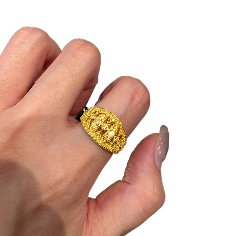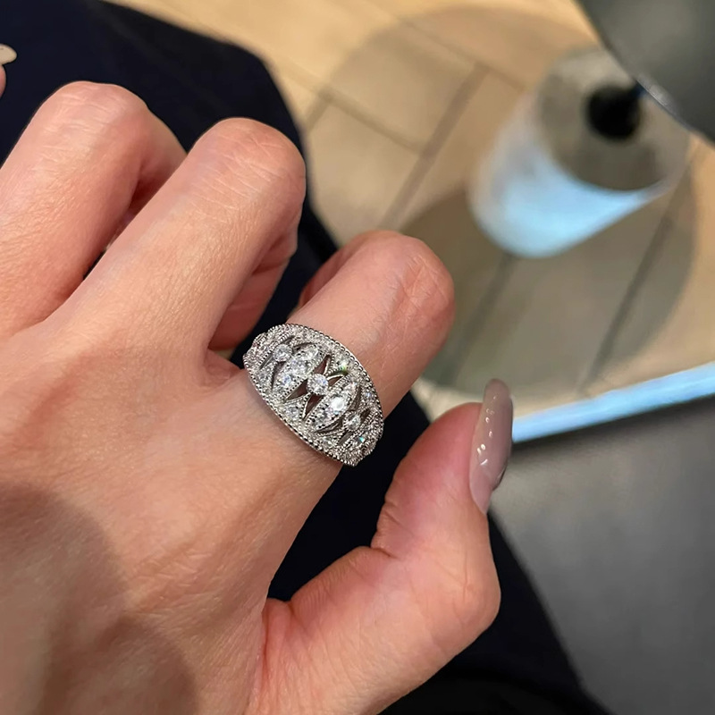 叠戴复古排钻戒指轻奢时尚简约镶钻宫廷雕花灯笼条戒