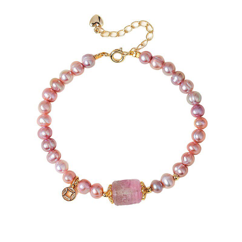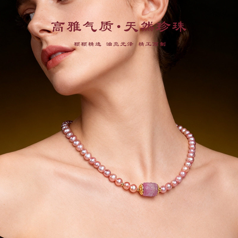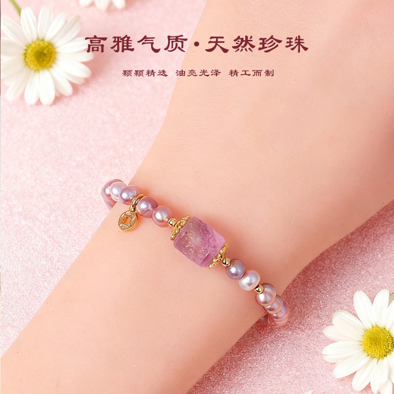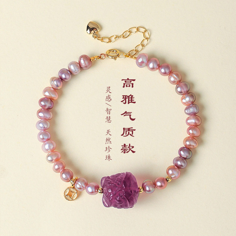天然珍珠手链女紫色淡水珍珠高雅气质回纹路路通紫水晶手链批发
