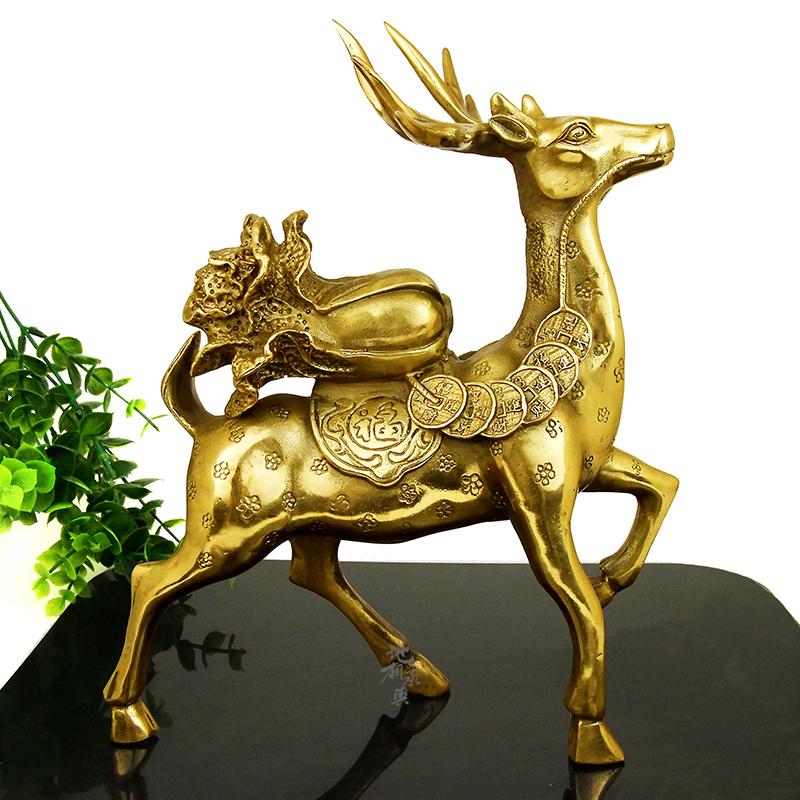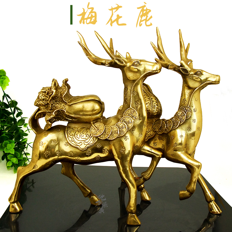黄铜梅花鹿摆件一对铜鹿福禄一路生财发财工艺品家居客厅福禄鹿