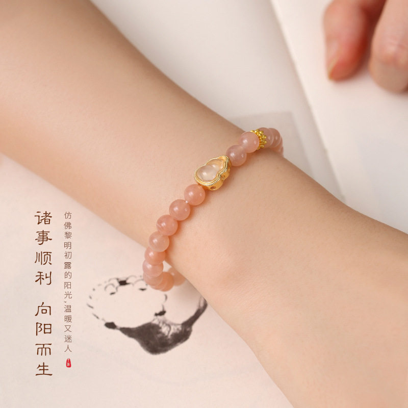 清新甜美太阳石手链新中式日光石手串盐源玛瑙莲花珠气质女生手串