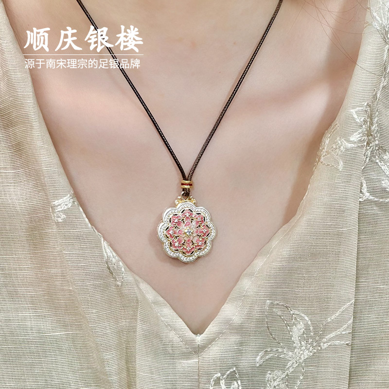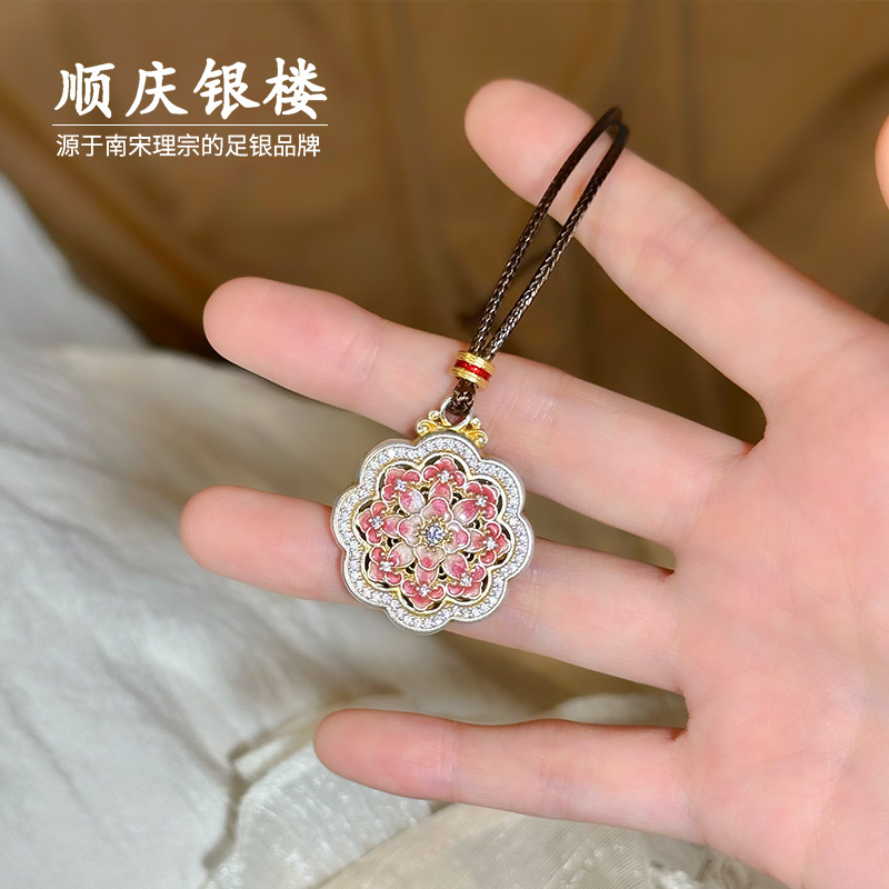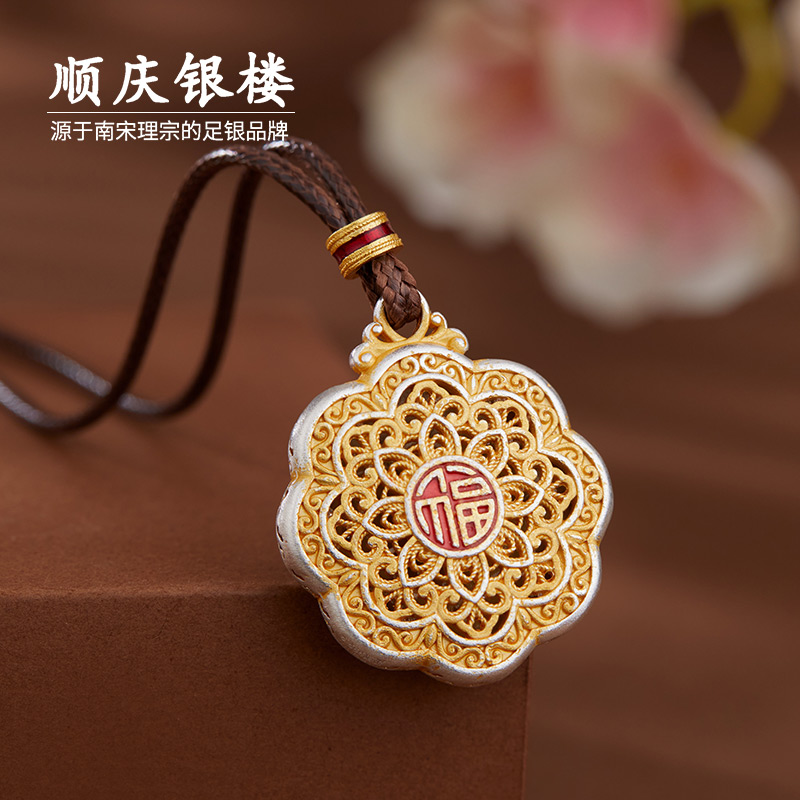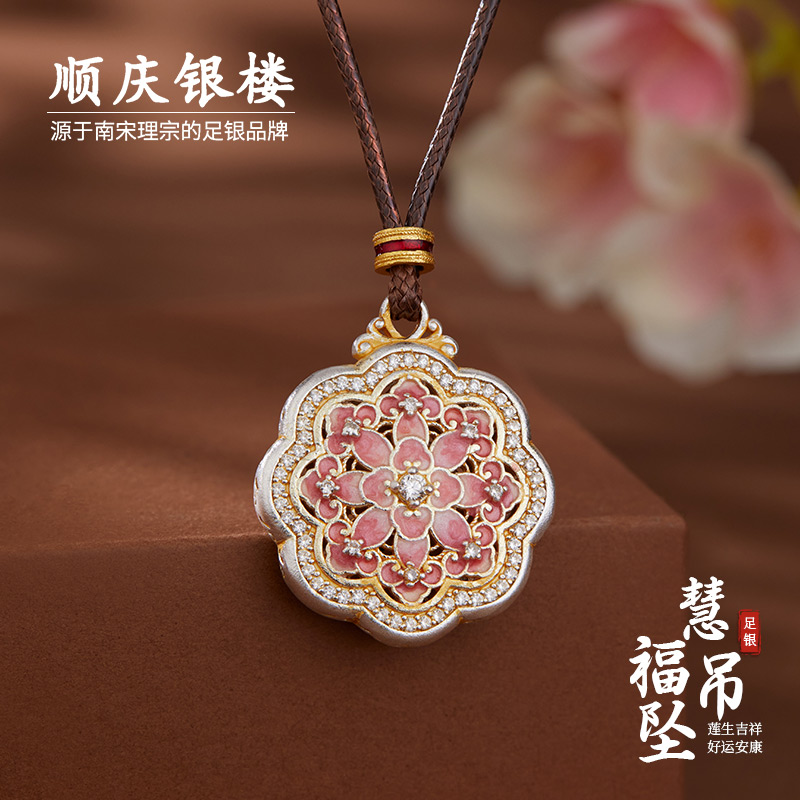 顺庆银楼S9999纯银吊坠慧福平安扣套链足银新中式挂件好运礼物