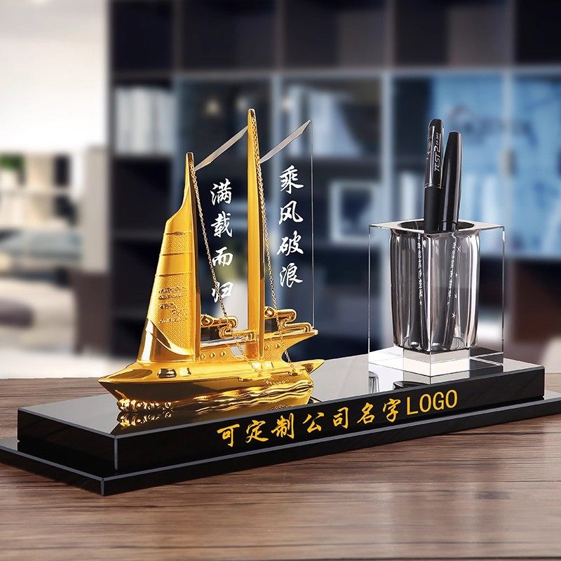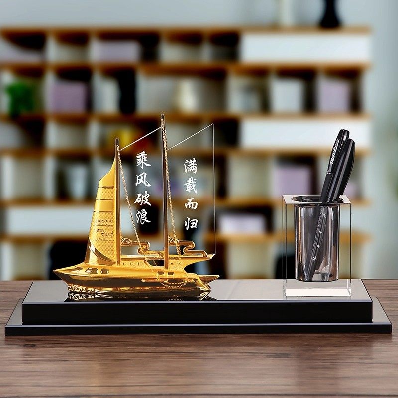 轻奢一帆风顺帆船摆件办公室装饰笔筒高级感摆件公司乔迁开业礼物