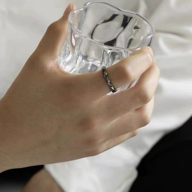 黑色莫比乌斯环戒指可调节个性潮男单身戒时尚复古风素圈开口指环