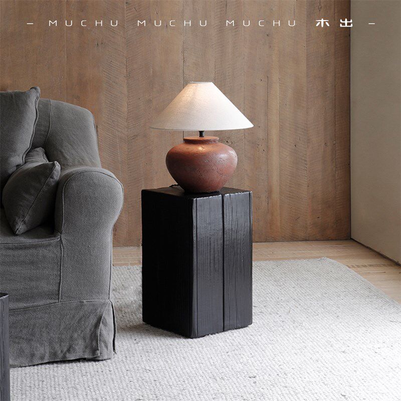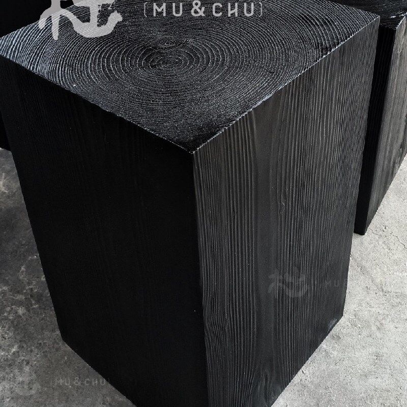 木出侘寂碳化黑色实木墩子雕塑底座民宿树桩创意家用矮凳边角几