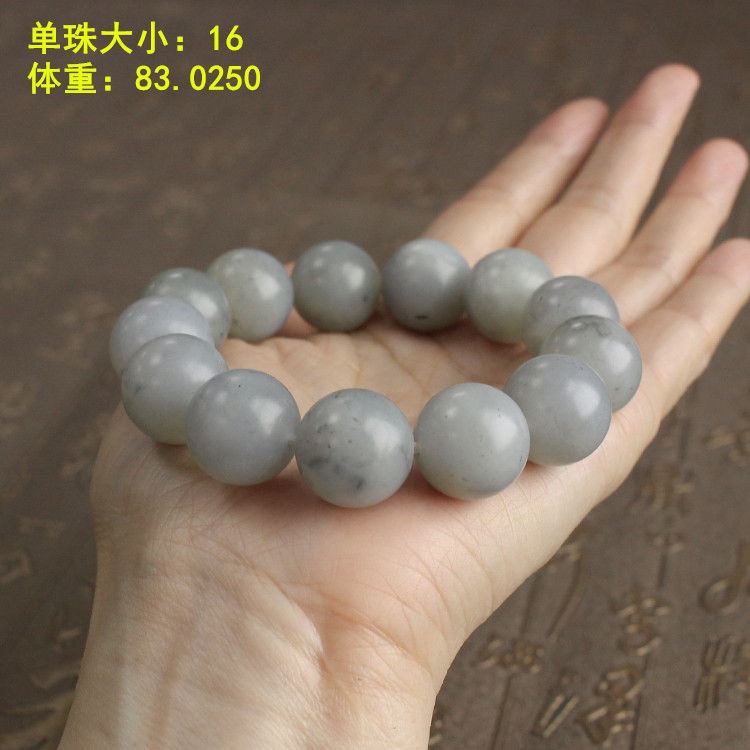 N16mm游离态石墨青花籽料圆珠手串新疆和田玉籽料朕®开仓