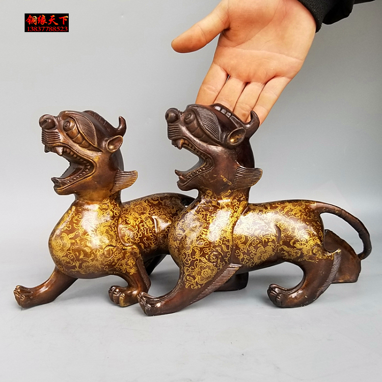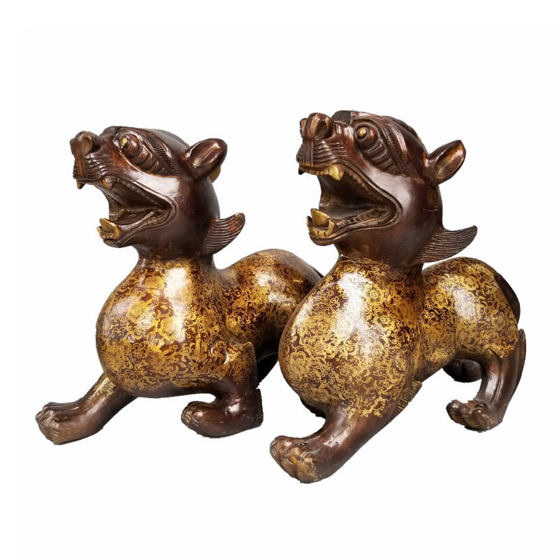 家居铜貔貅独角兽望天吼天禄神兽瑞兽貔貅一对摆件