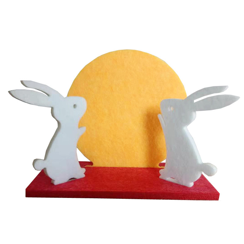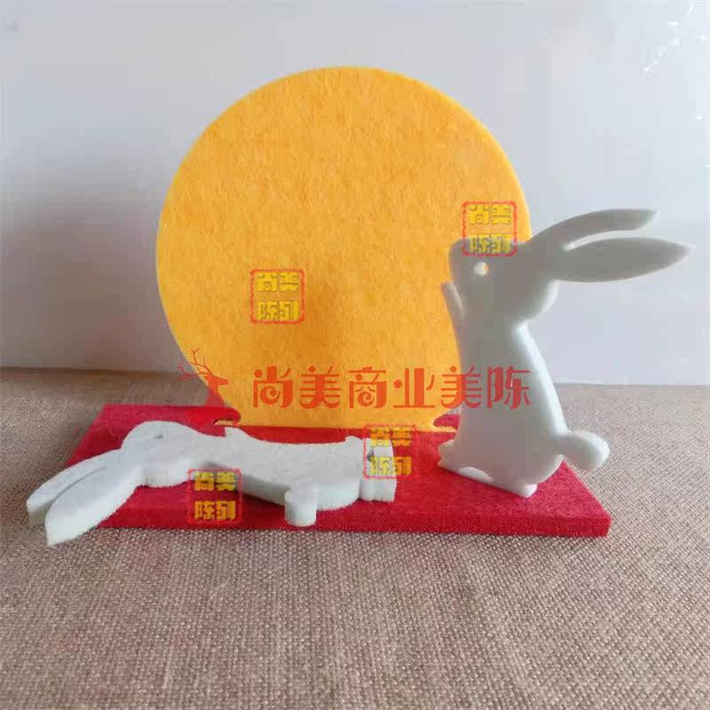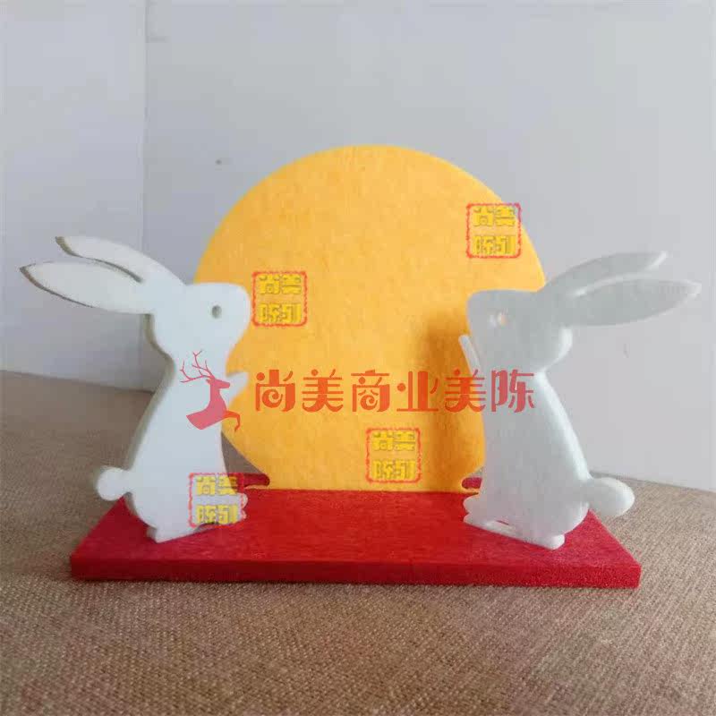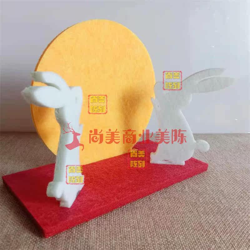 中秋节白色小兔子柜台装饰玉兔圆月桌面摆件橱窗嫦娥月饼软装美陈