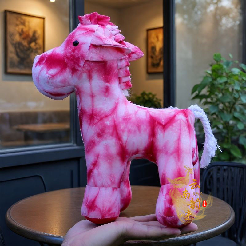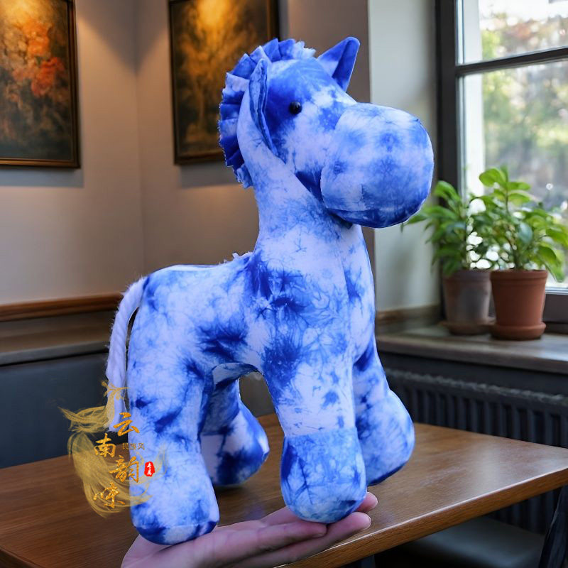 大理植物染手工蓝染扎染玩偶马摆件成品蓝色扎染蓝白可爱动物