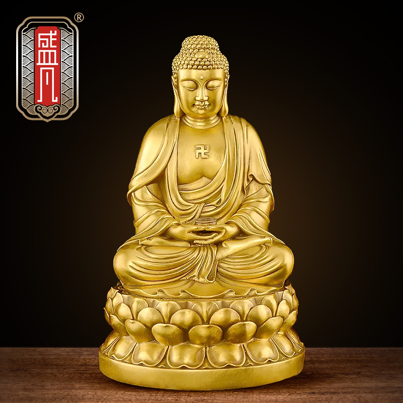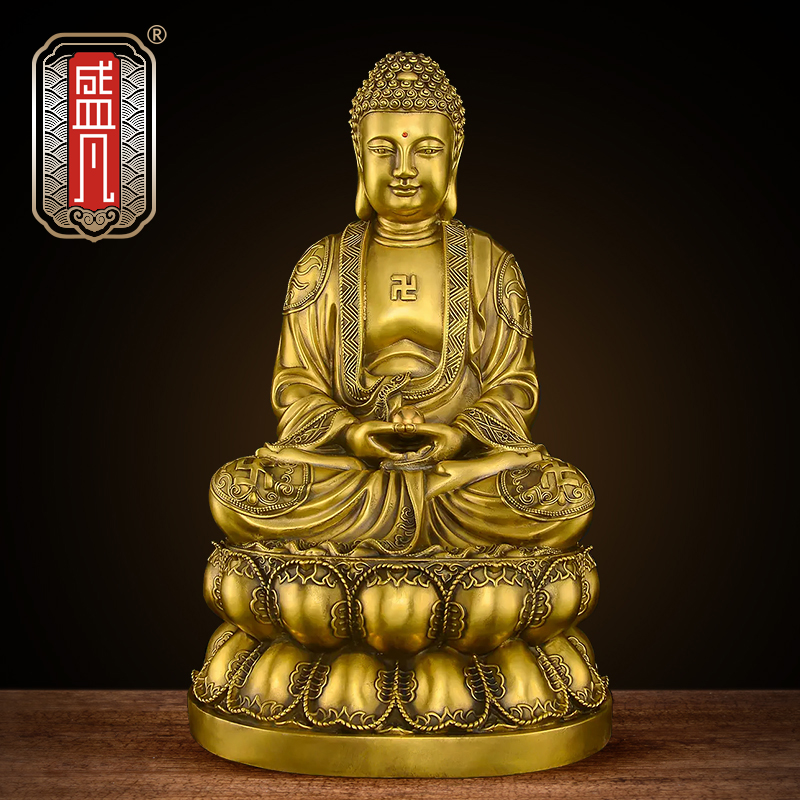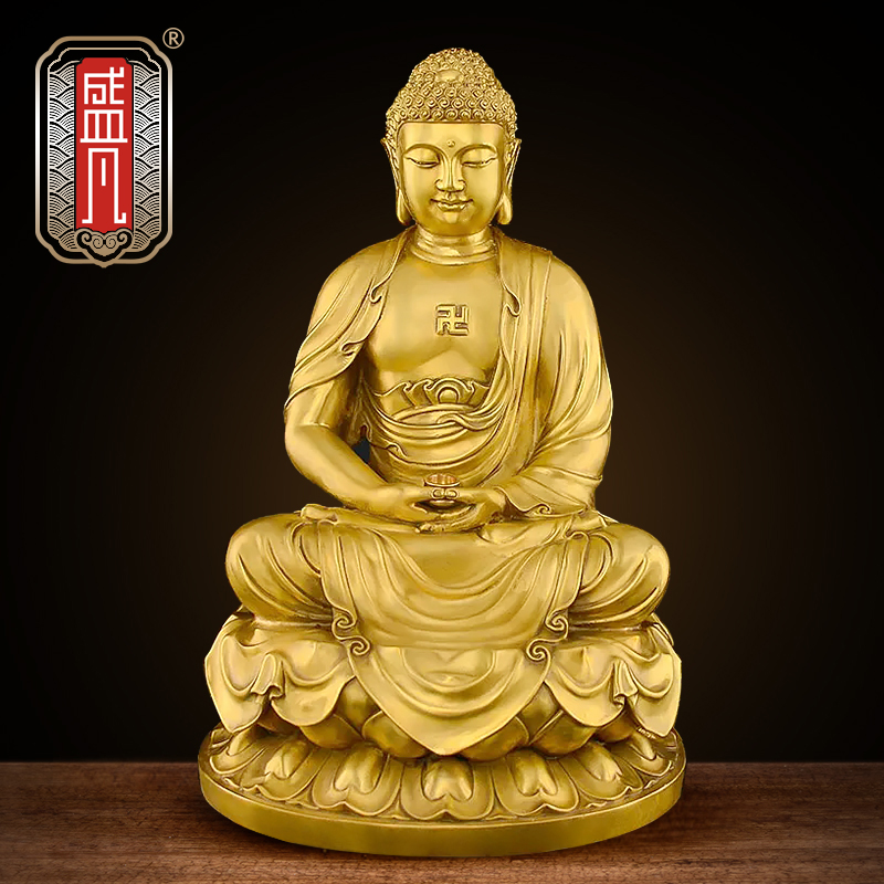 盛凡释迦牟尼佛佛像黄铜释迦摩尼铜像坐像家用大号如来佛祖摆件