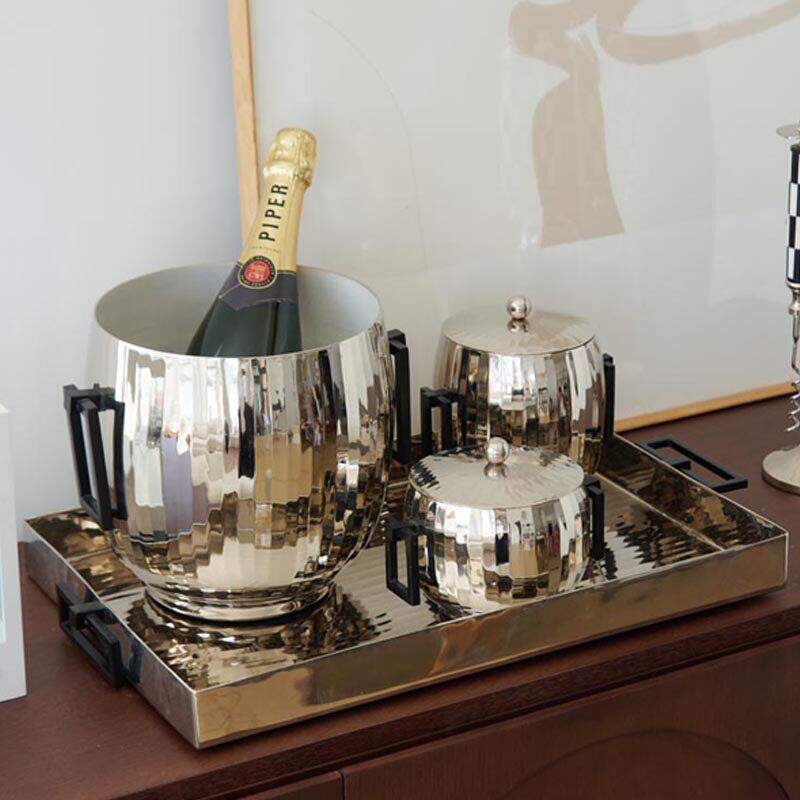 现代轻奢不锈钢托盘冰桶调酒器套装厨房中岛台装饰摆件家居艺术品