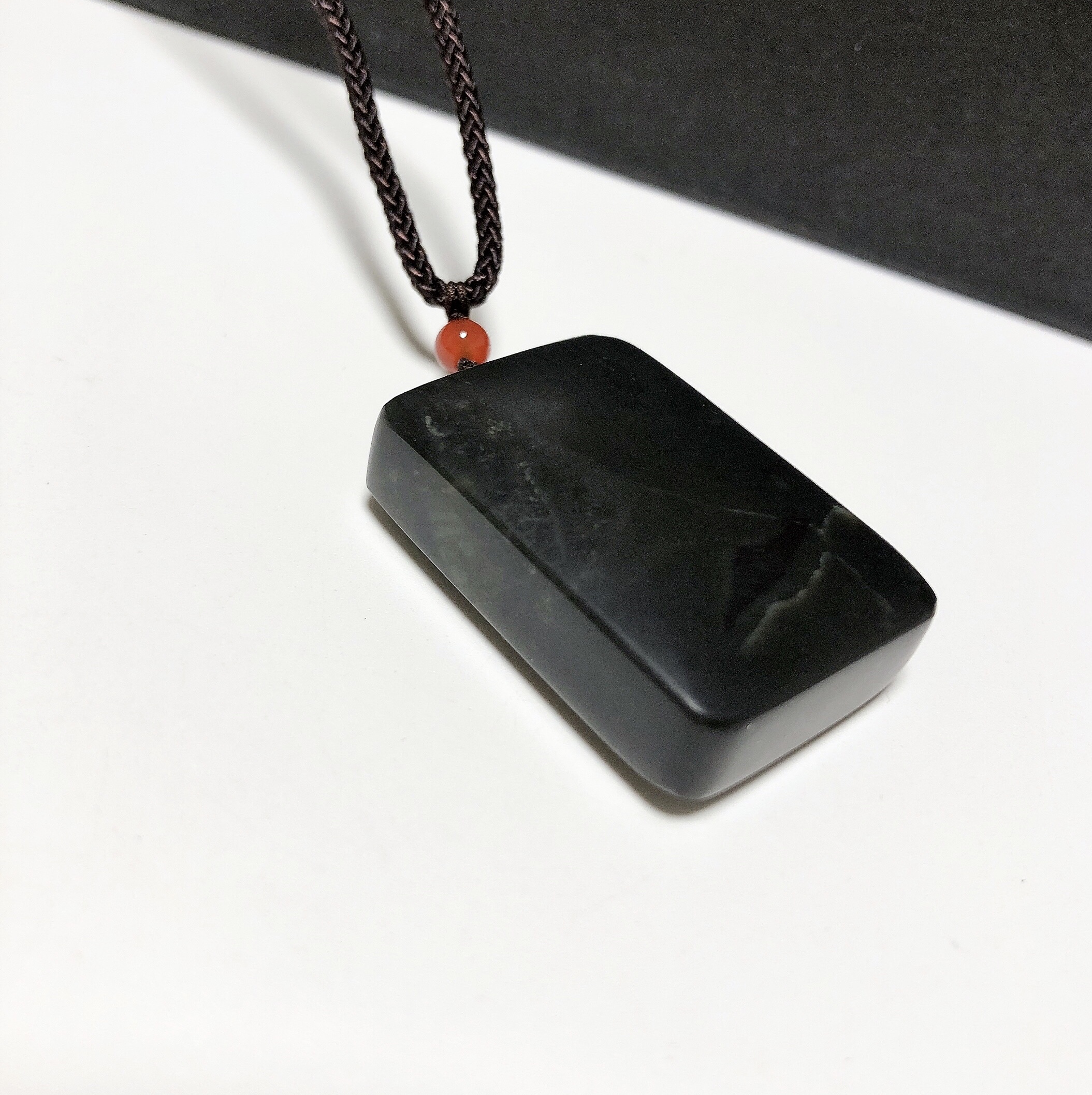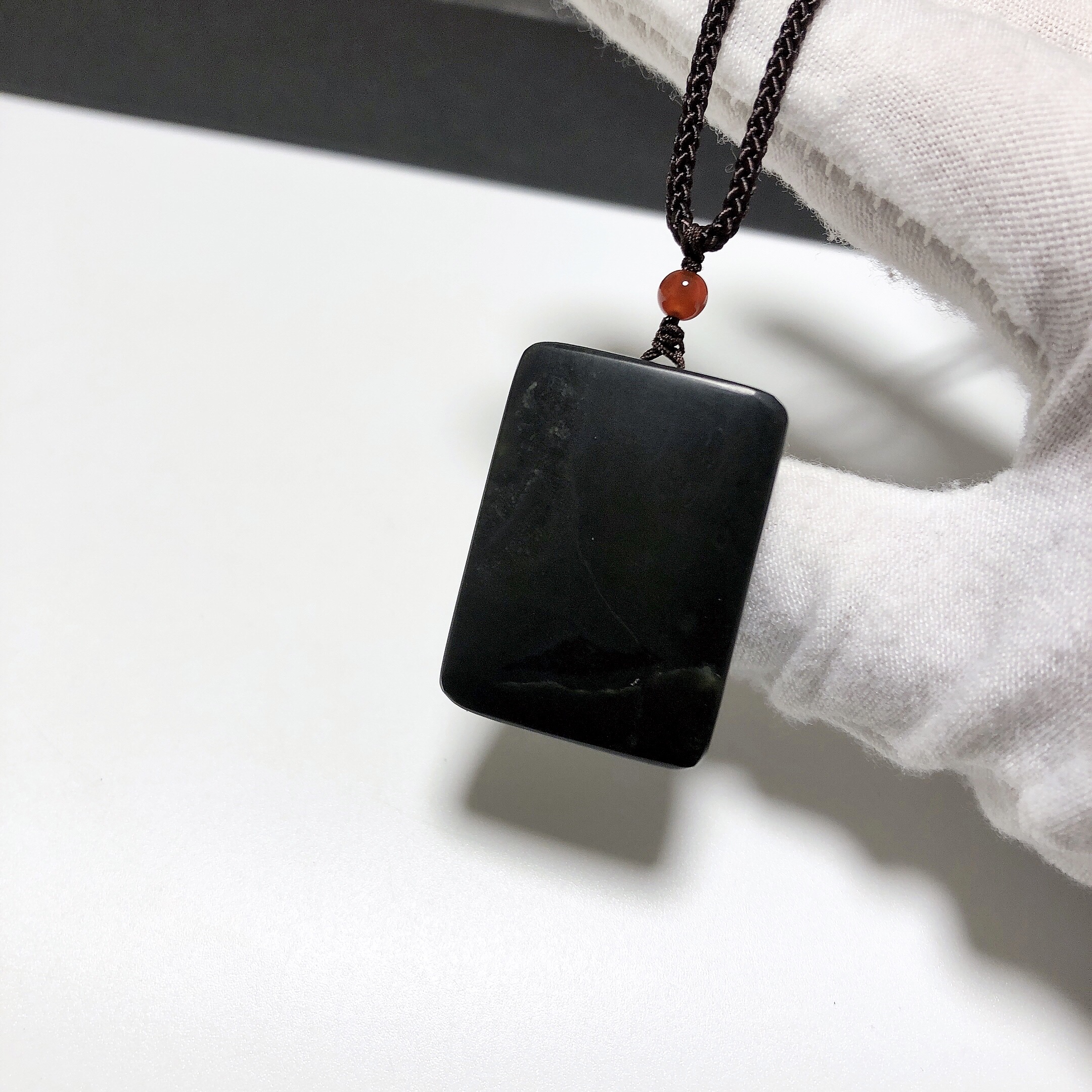 D342# 新疆和田玉天然羊脂墨玉无事牌玉佩玉坠挂件32.5*23.5*10.3