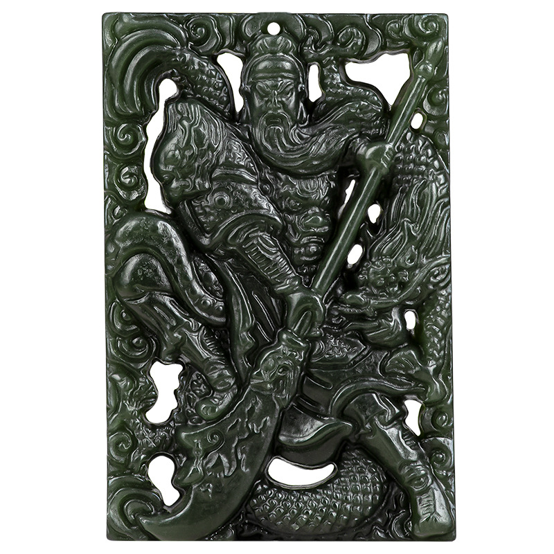 天然老料和田玉墨玉神龙关公玉石吊坠霸气男士挂件玉牌高档