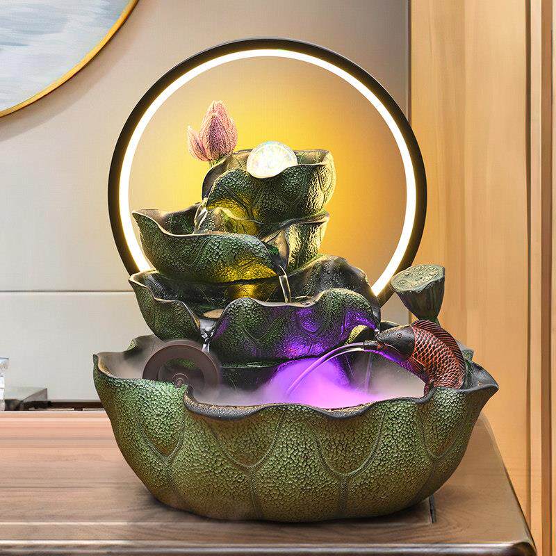 新中式流水生财摆件循环水景茶室客厅办公喷泉装饰风水轮开 业乔