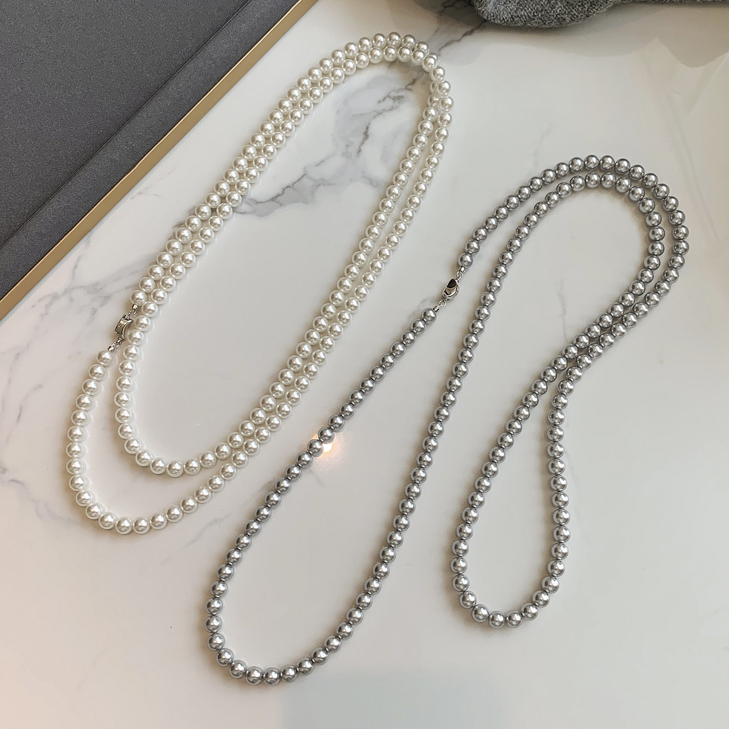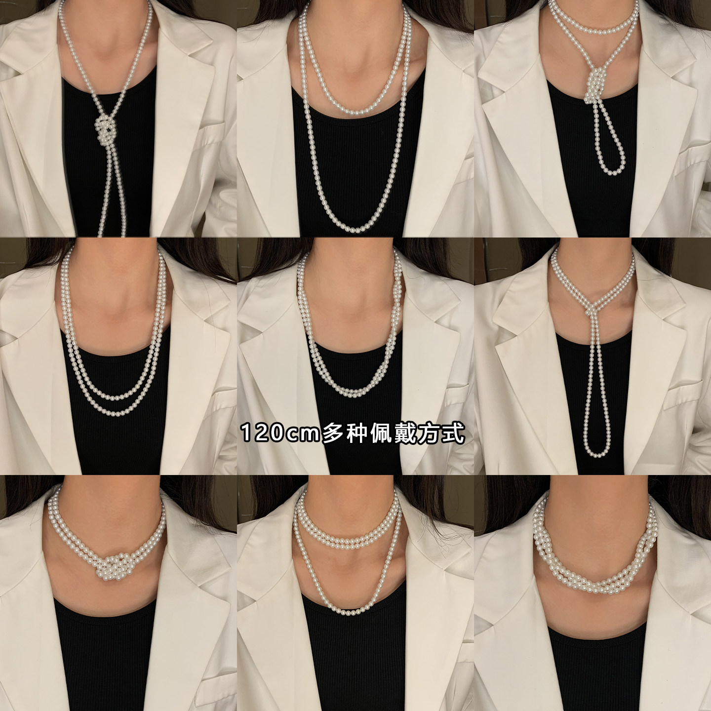 施家华子双层澳白色长款珍珠项链女秋冬轻奢大气高档高级感毛衣链