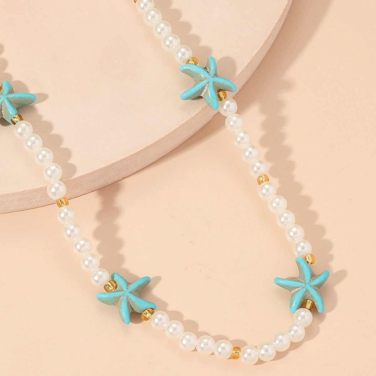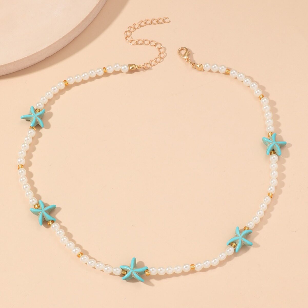 波西米亚度假风松石珍珠可调节项链适合女士女生沙滩度假派对通勤