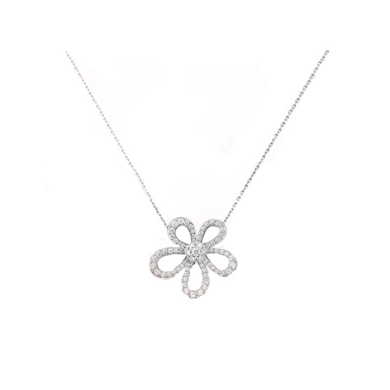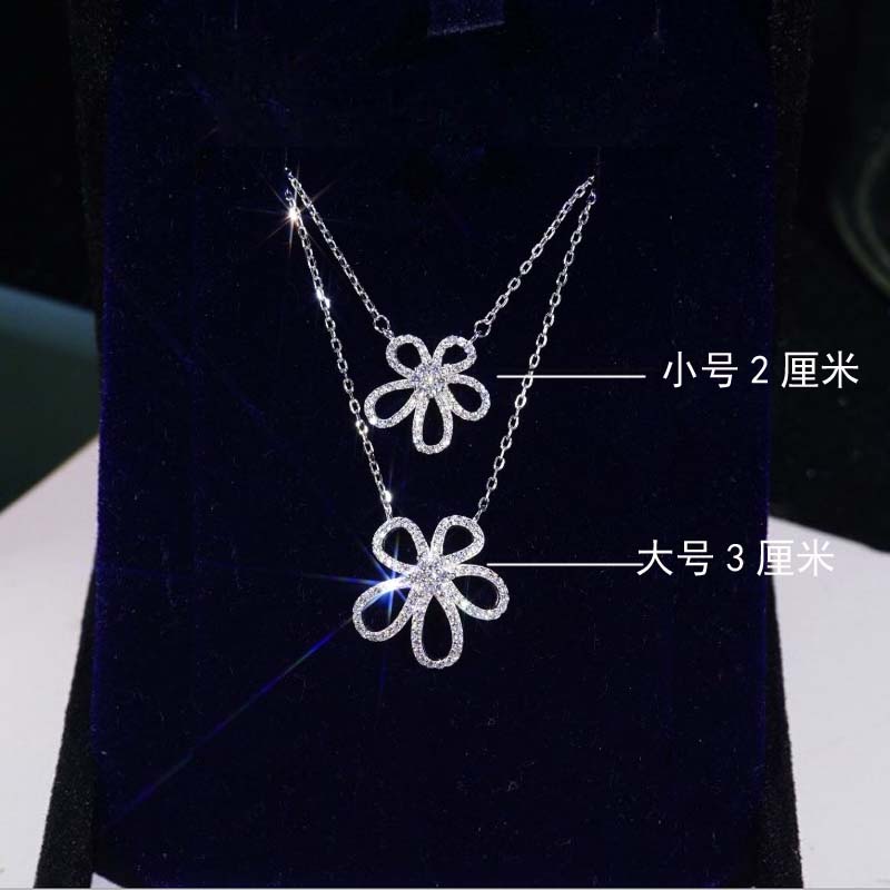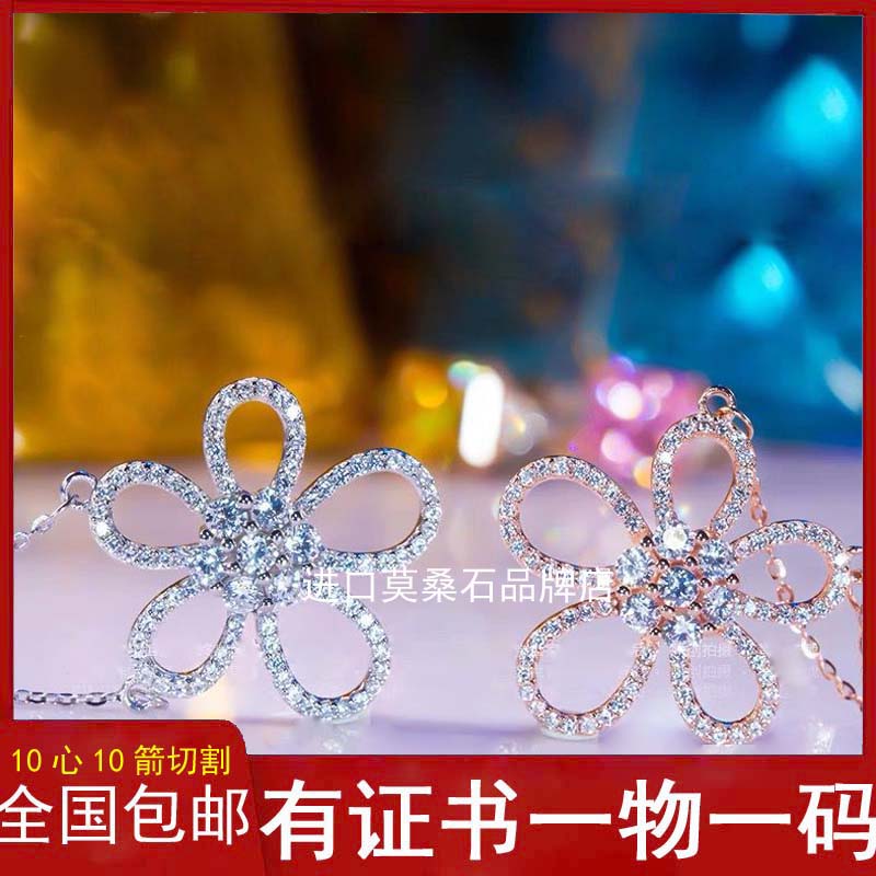 莫桑石18k白金项链AU750花朵夸张S925纯银吊坠时尚原创不褪色精致