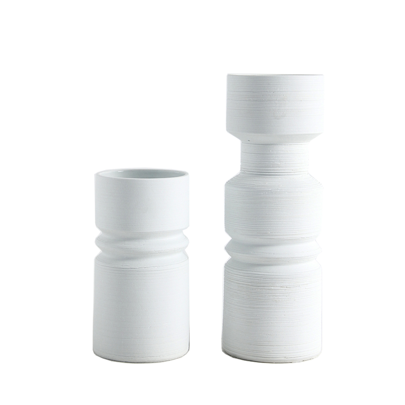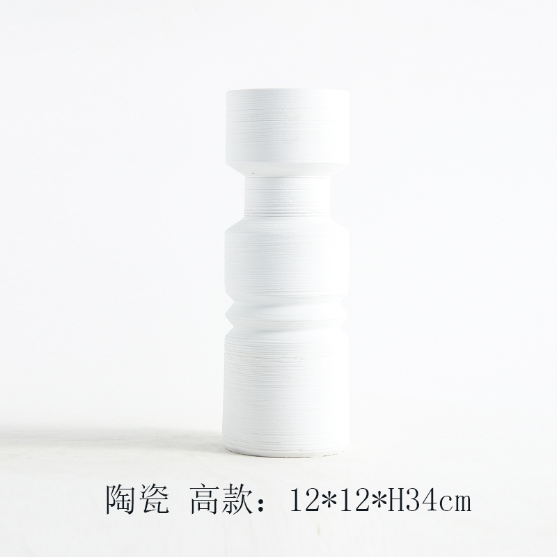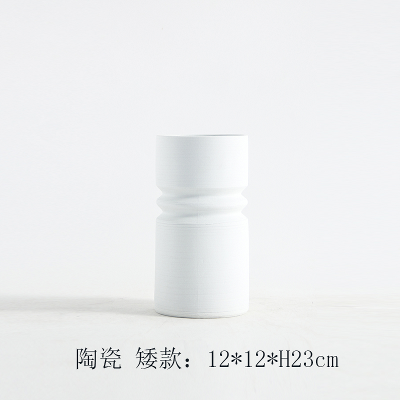 速发简约陶瓷圆柱形花器摆件样板间客装茶几餐花白色桌瓶厅饰